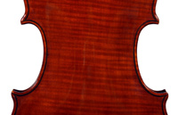 The one-piece back, ribs, neck and scroll are of mildly flamed maple with a narrow curl. The top is of excellent tone spruce with an even medium to narrow grain. The Fs show refinement and balance. The oil varnish is an attractive reddish brown.