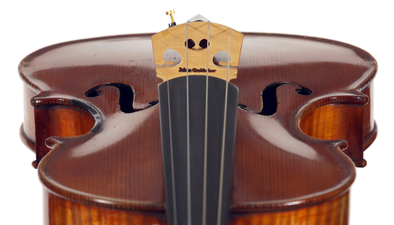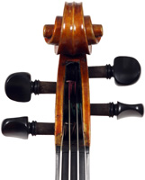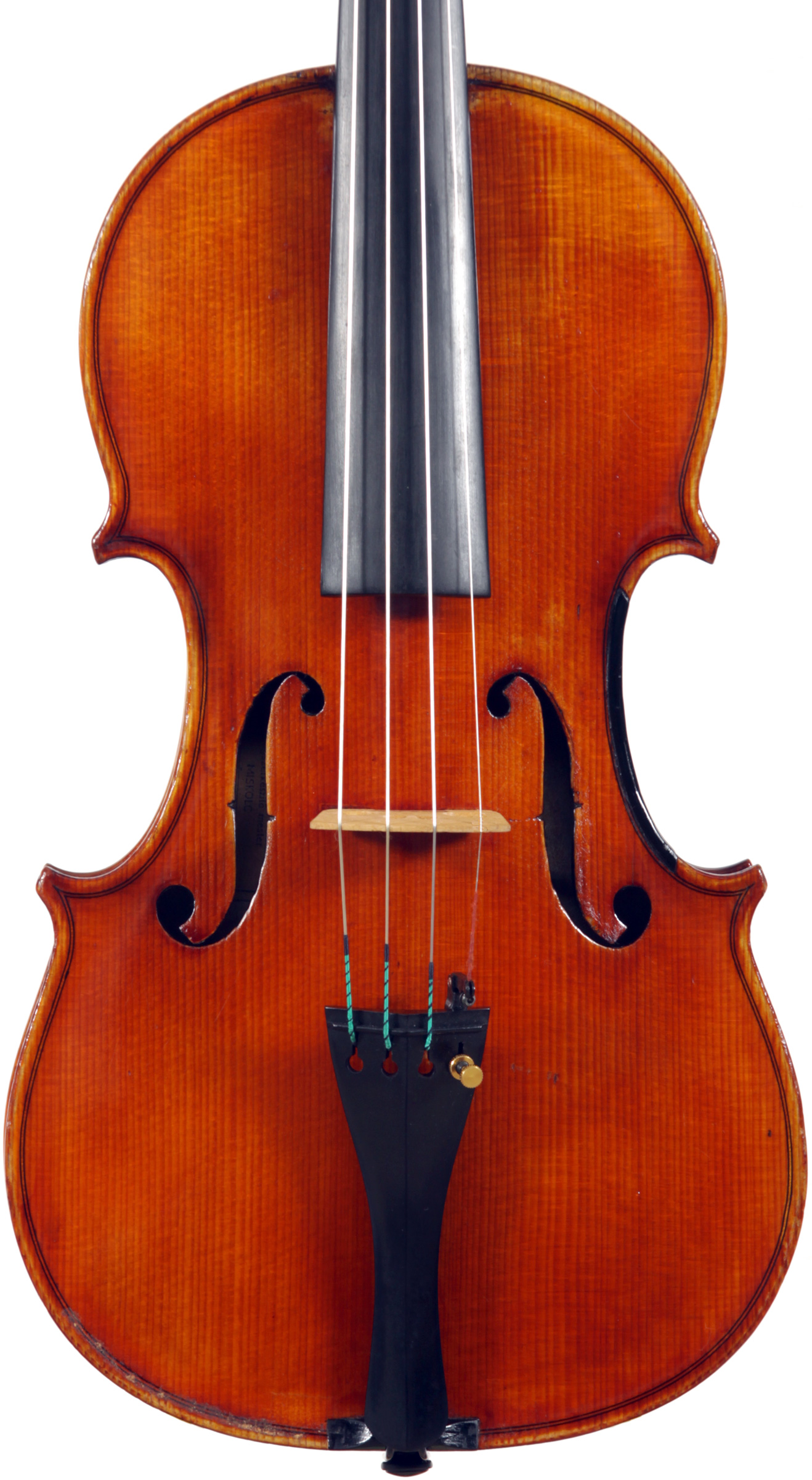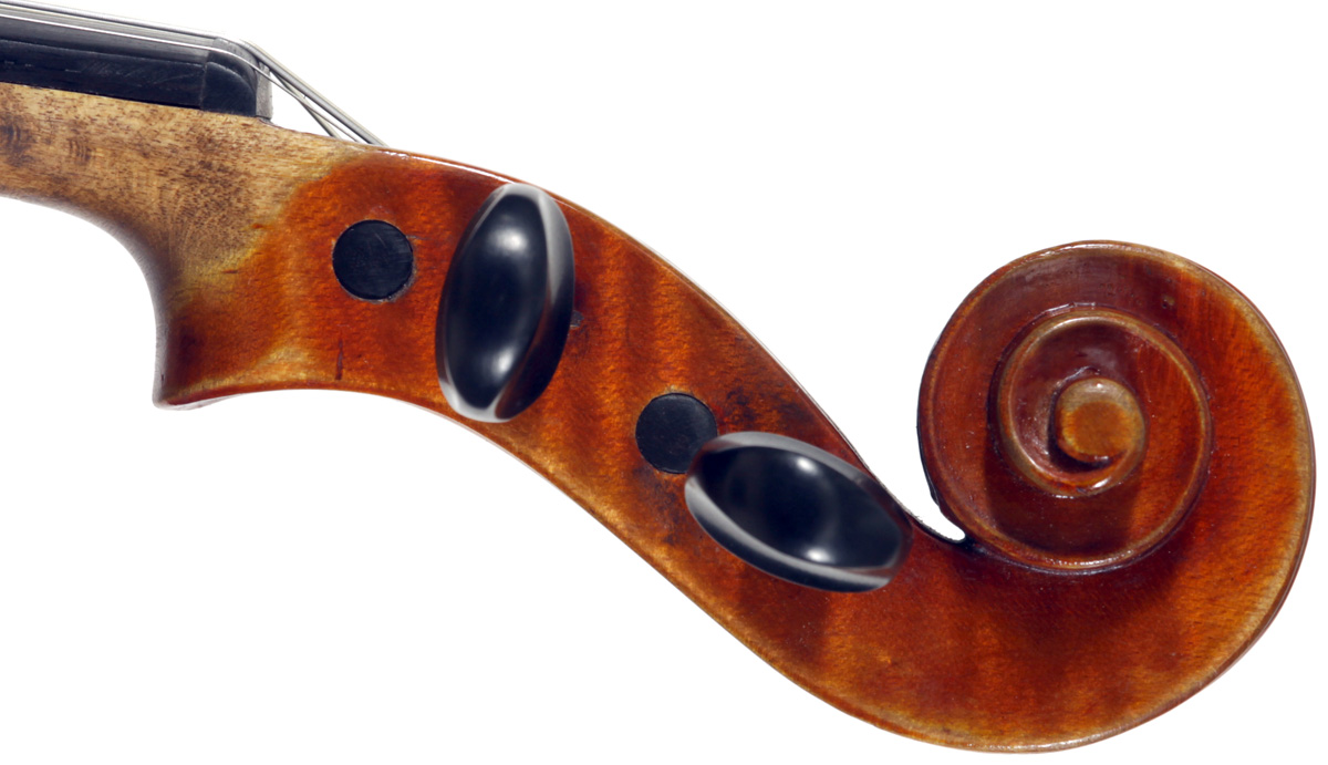 The two-piece back, ribs, neck and scroll are of good maple with a medium curl and distinct figure sloping down from the centre seam to the flanks. The top is of open-grained tone spruce. The oil varnish is an appealing orange-brown and the current fittings are of ebony.