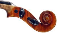 This violin has an ebony edge protector built into the edge of the top's treble c-bout, to protect the edge from being struck by the bow's frog - something that Sandor Elek also did as a matter of course. There is a lot of forethought and insight behind this.