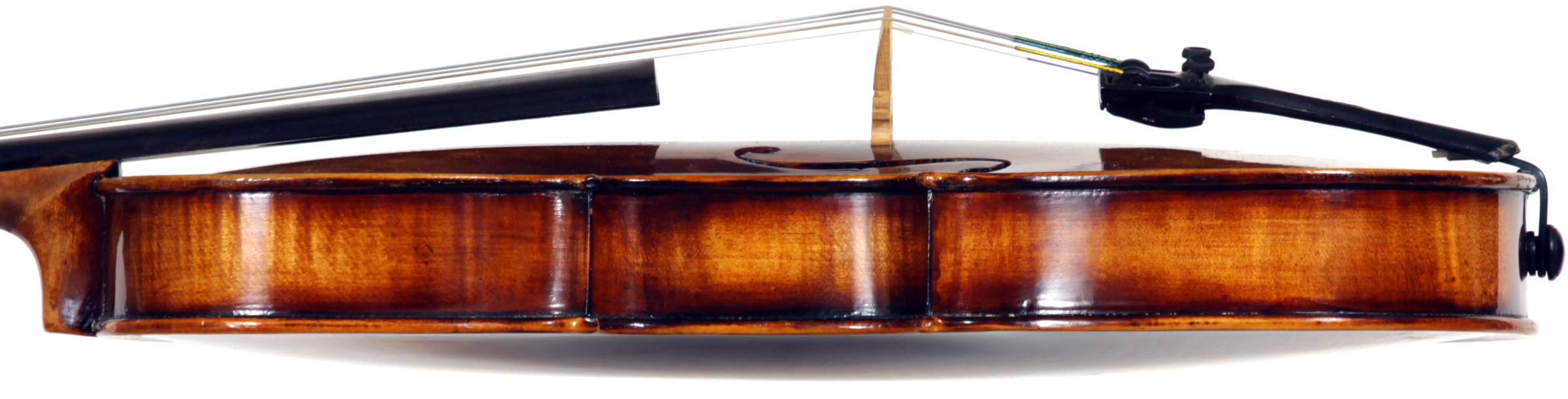 Everything in its workmanship points at the commercial work of German trade studios. The choice of materials in this violin is good and workmanship is also of good standard, resulting in an instrument of considerable merit.