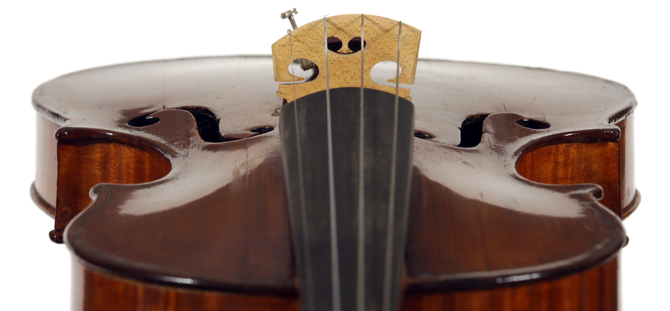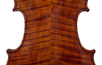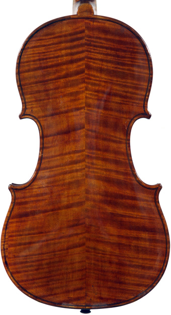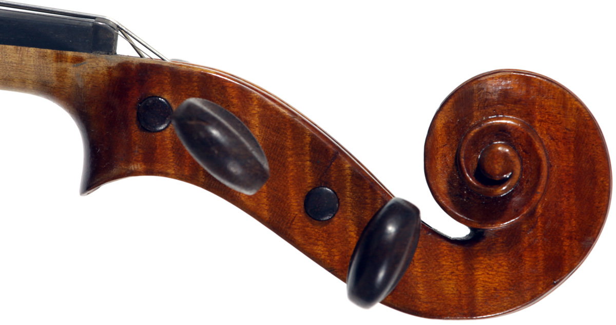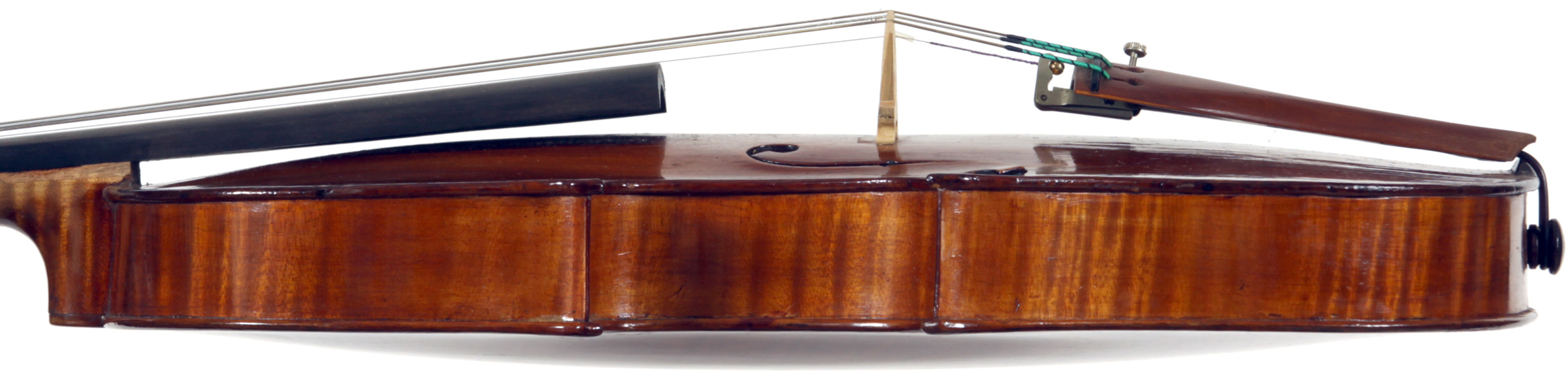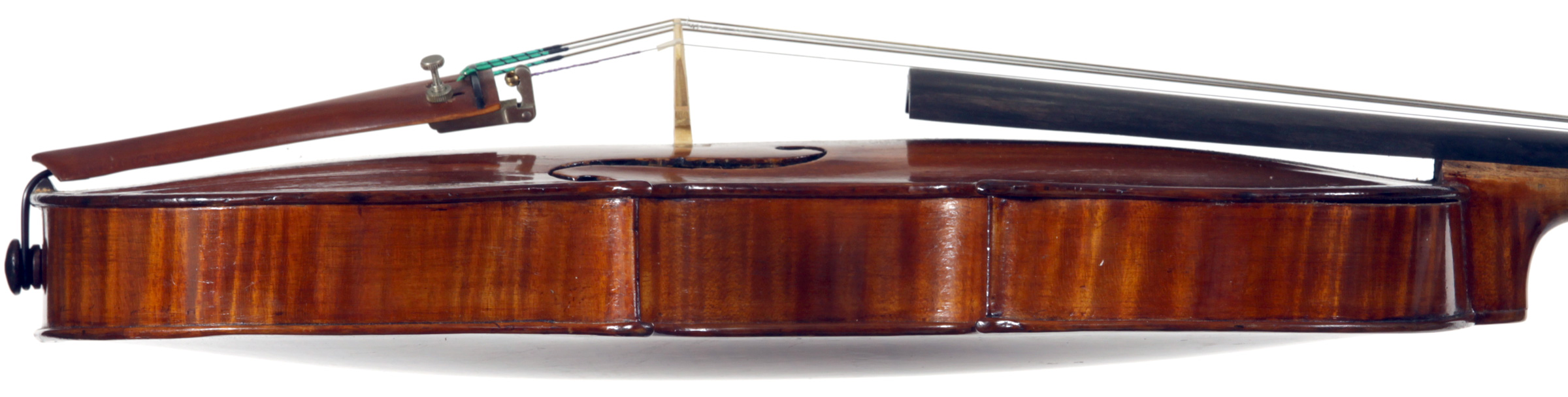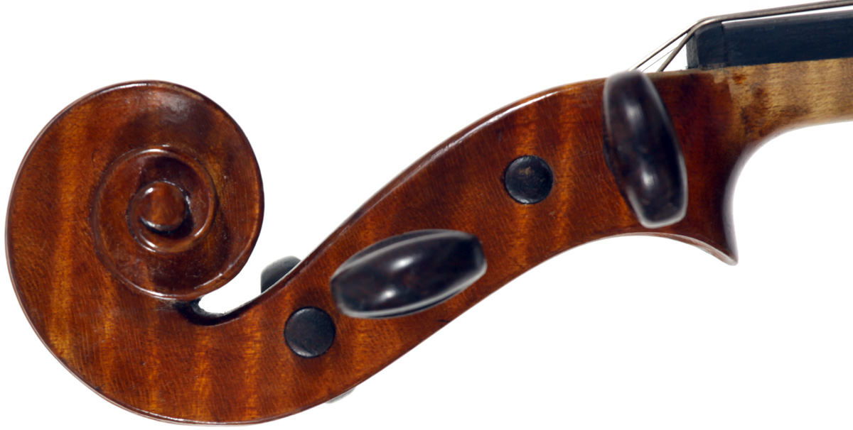 The scroll is impeccably balanced, refined and executed with unusual care and attention to detail. The Fs are crisp, tidy and balanced. The tracing of the purfling and execution of the corners and mitres are so good as to reflect the hand of a very experienced violin maker. And so, at this time, its origin remains unknown, but I would be greatly surprised if this is relegated to commercial work, which in my view it certainly is not. Since much of a violin's age is captured in its varnish and since this violin has been revarnished, it is difficult to assess its real age, but a calculated guess would put it at late- 19th century.