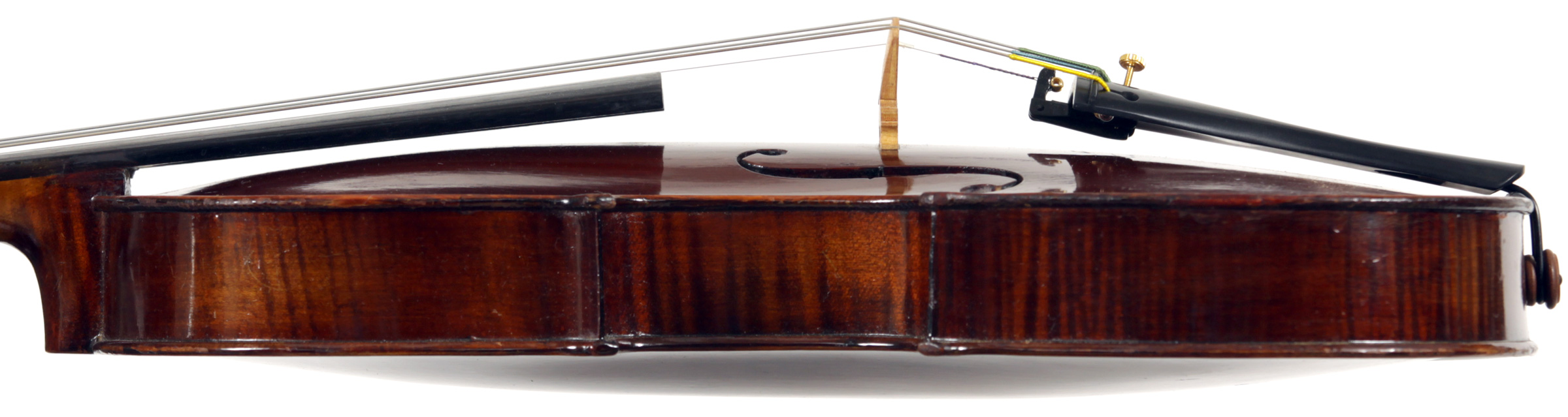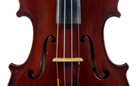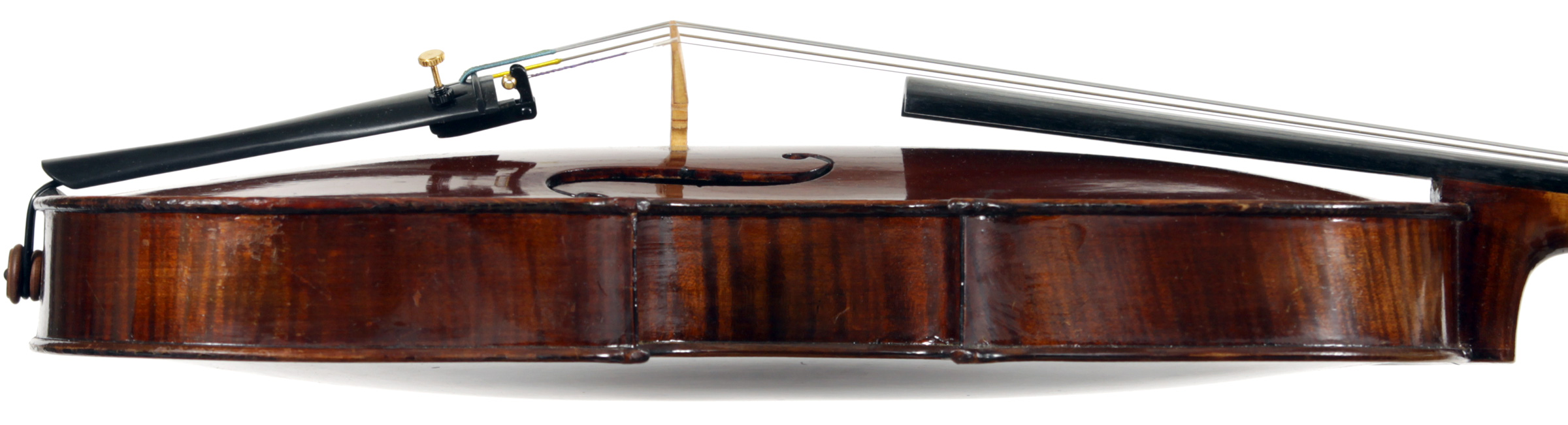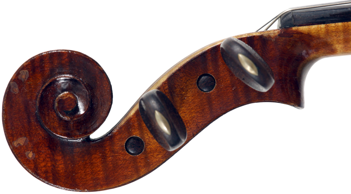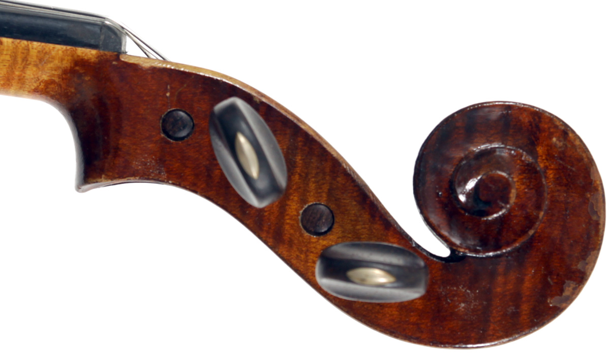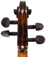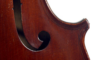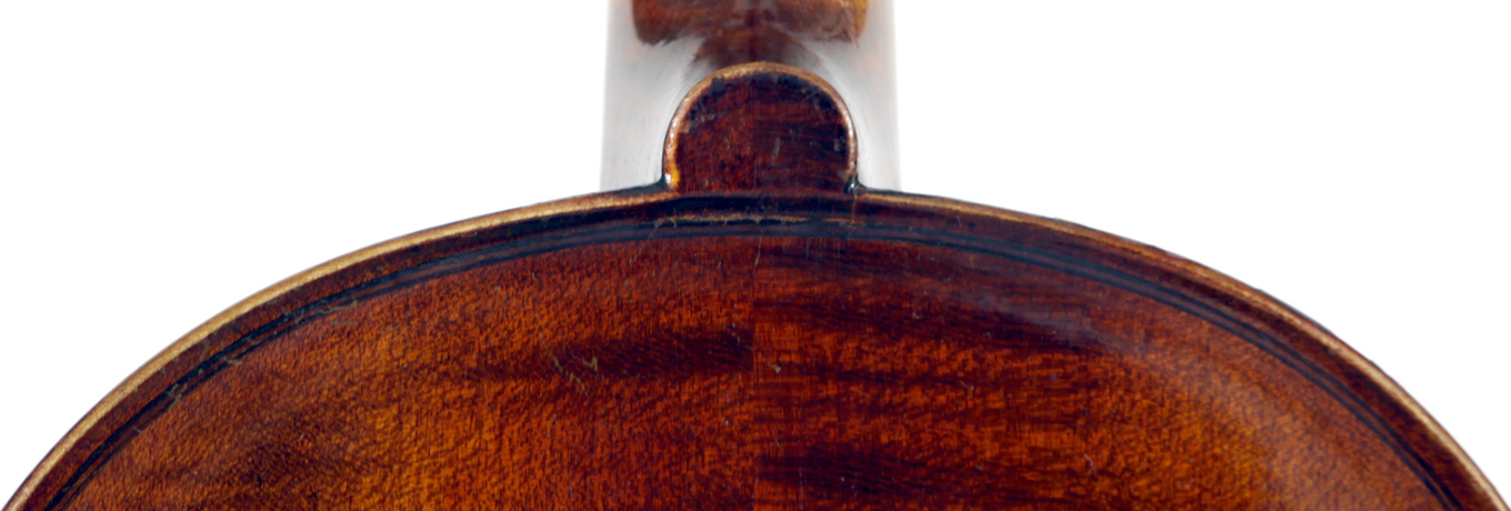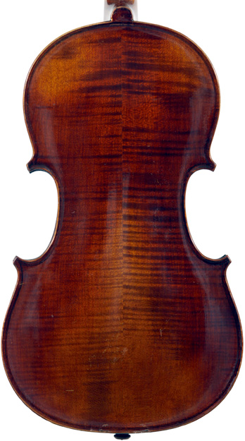 It's an attractive instrument in very good condition. The two-piece back, ribs, neck and scroll appear to be of the same piece of mildly flamed maple with a straight narrow to medium curl. The top grain is unusually narrow. Workmanship throughout is tidy and steady.