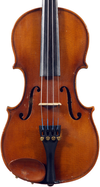 This unlabelled little violin is probably of German or East European origin. It represents good trade (commercial) work and has probably served several generations of children.