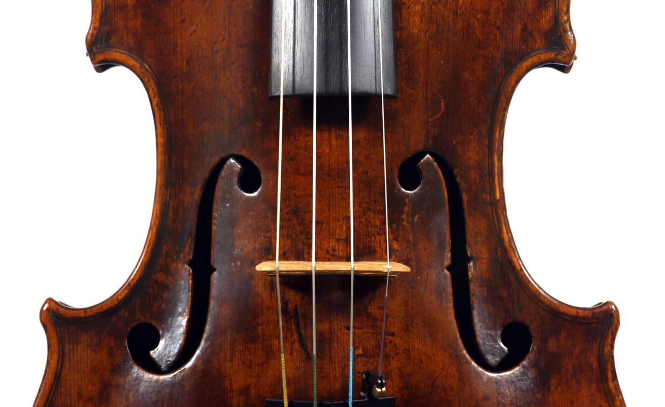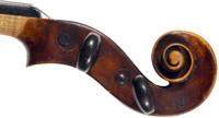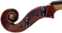 Workmanship in this violin is of a very high order, evidenced particularly in attention to detail, the impeccably traced purfling and superb mitres and cornerwork. The scroll is elegant and nicely balanced.