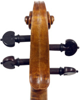 Although evidently having been much used, this violin is in excellent structural condition with no cracks or repairs evident anywhere. It may have been revarnished some five or six decades ago - nicely done. It has new pegs, new tailpiece, a new bridge, a completely new setup and new Dominant strings.