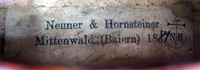The Mittenwald-based firm of Neuner & Hornsteiner operated during the 19th century and reached its zenith during the latter part of that century. They produced instruments in various models, from basic to high professional level and were known for superb workmanship and very high quality throughout their operation. They exported to many countries and to this day any instrument labelled Neuner & Hornsteiner commands respect. This violin, dated 1881 remains in superb condition and apart from superficial scratches, it is completely free from defects and is largely as when made, over 140 years ago.
