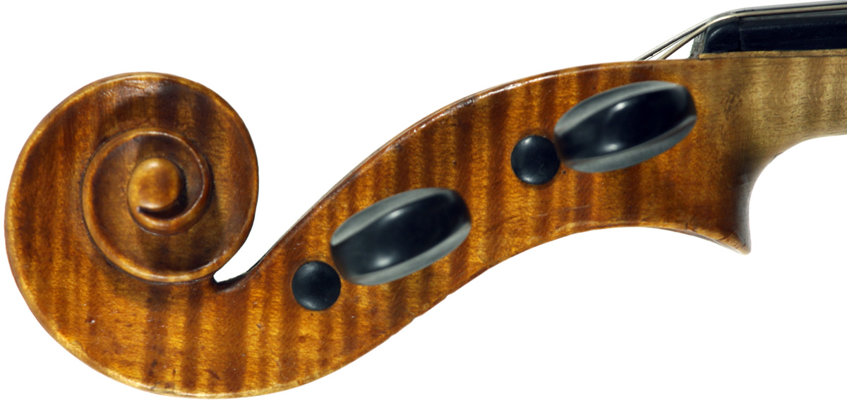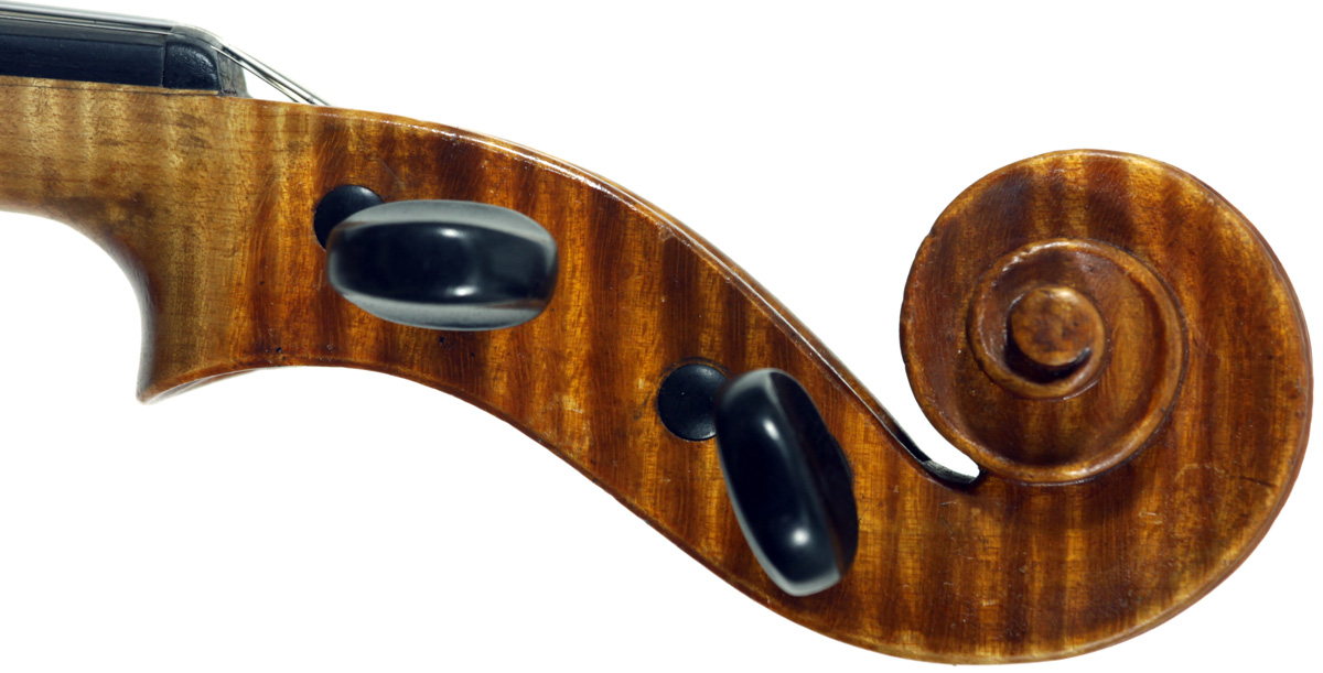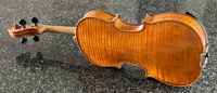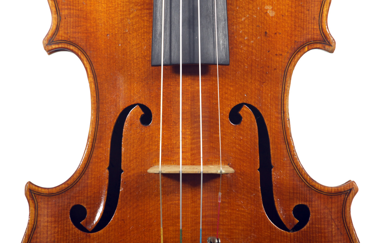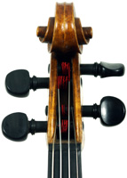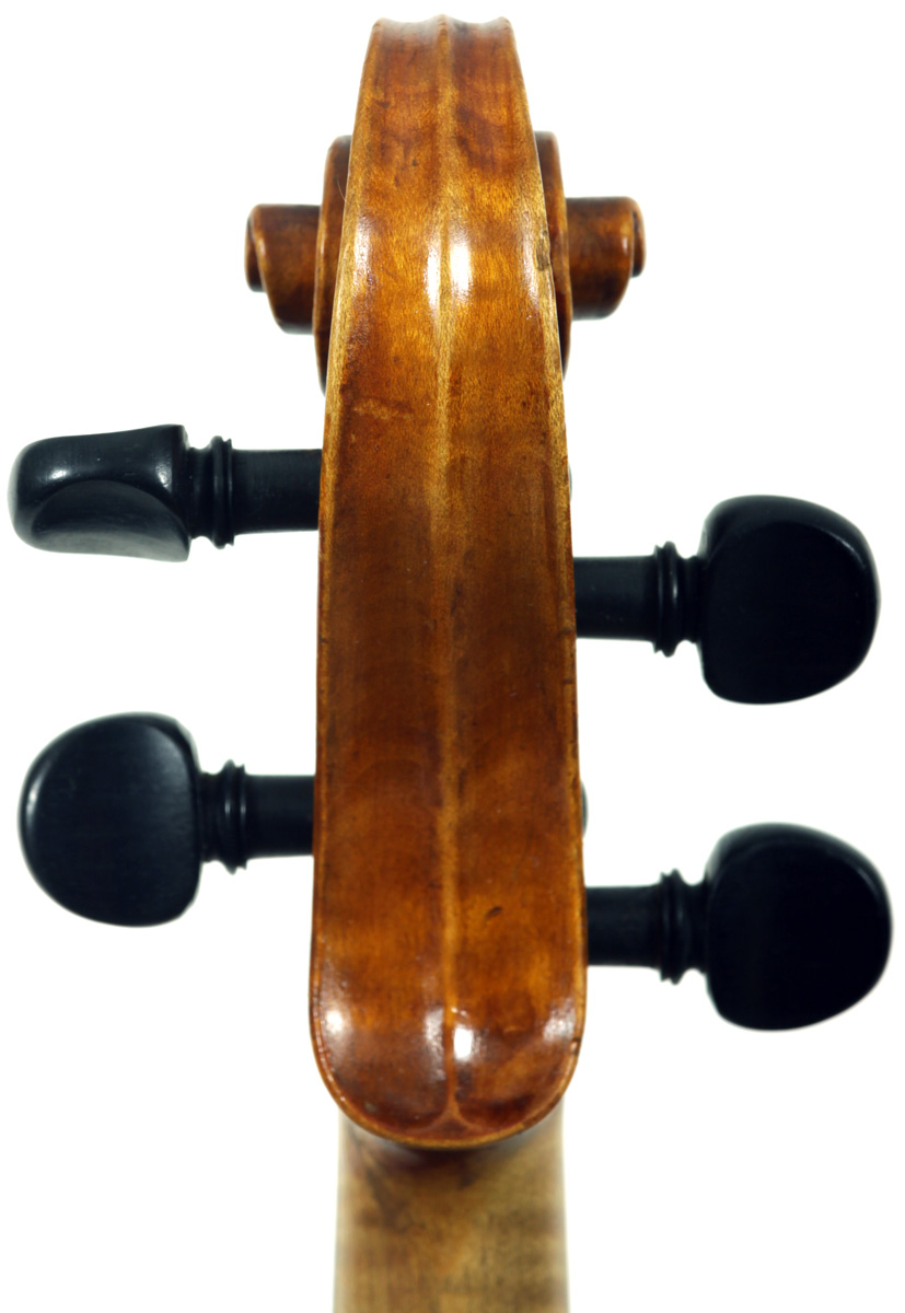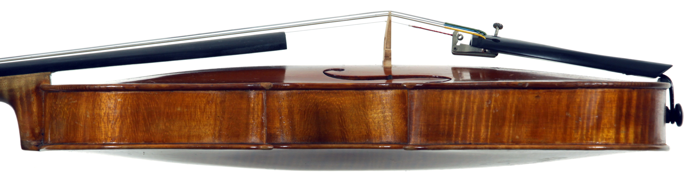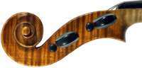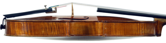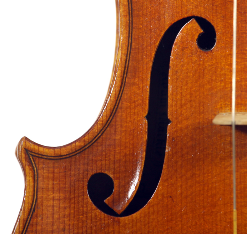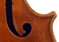 In this violin one immediately notes the exquisite one-piece back. Workmanship throughout is impeccable, notably in the Fs, purfling and corners.