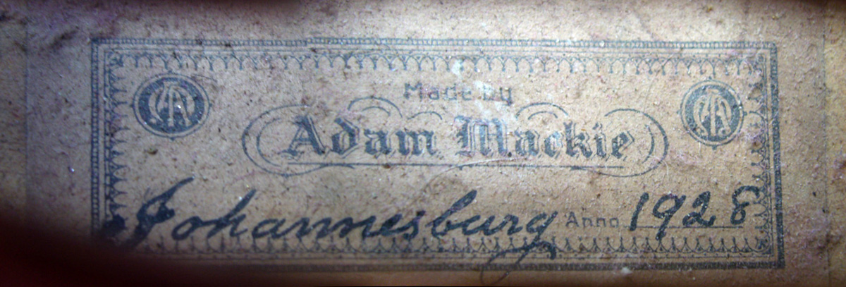 Referring to this instrument as Scottish would not be correct - although Mackie was born and apprenticed in Aberdeen and Glasgow, he spent several years in Australia, New Zealand and Tasmania before settling in Johannesburg (South Africa) in the early 1920s. Throughout his life he carefully studied old Italian instruments, exploring in particular their tonal properties. This resulted in a publication on 'The Secret of Italian Tone', which Henley considers as a real contribution in this field. He copied in particular a Strad from 1720, which may have served as a model for this violin, but an opinion has been expressed that this violin could have been copied from G. B. Guadagnini.