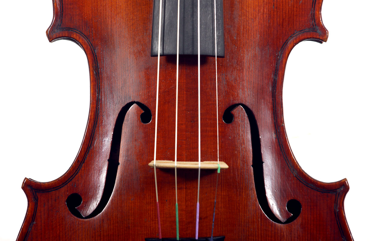 This violin is fitted with the label that is normally associated with this firm, made in 1910 and signed across the label. This makes one believe that it was locally made and not an import. Furthermore, there is nothing about this violin that indicates German roots, neither does it convince as possibly being French - so the conclusion is that it was made in the London studio.