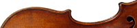 It is difficult to attribute a date to this violin. The varnish is only lightly worn in the usual places, and yet it has a truly impeccable neck graft (one of the finest I've ever seen!) which would imply that this instrument was made in the early 19th century or possibly in the 18th century. The pegholes are unbushed. By and large it has the appearance of an instrument made in the late 19th century, and yet the inside shows a high degree of oxidization, such as one would associate with an instrument of the mid-18th century or earlier. Interestingly the neck block inside is much later than the rest of the violin