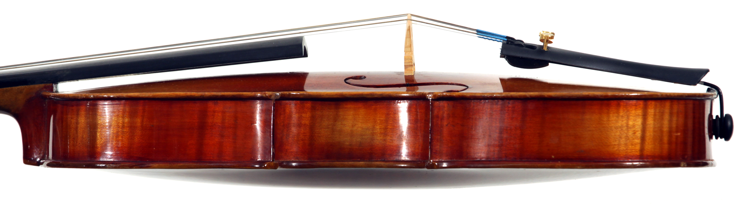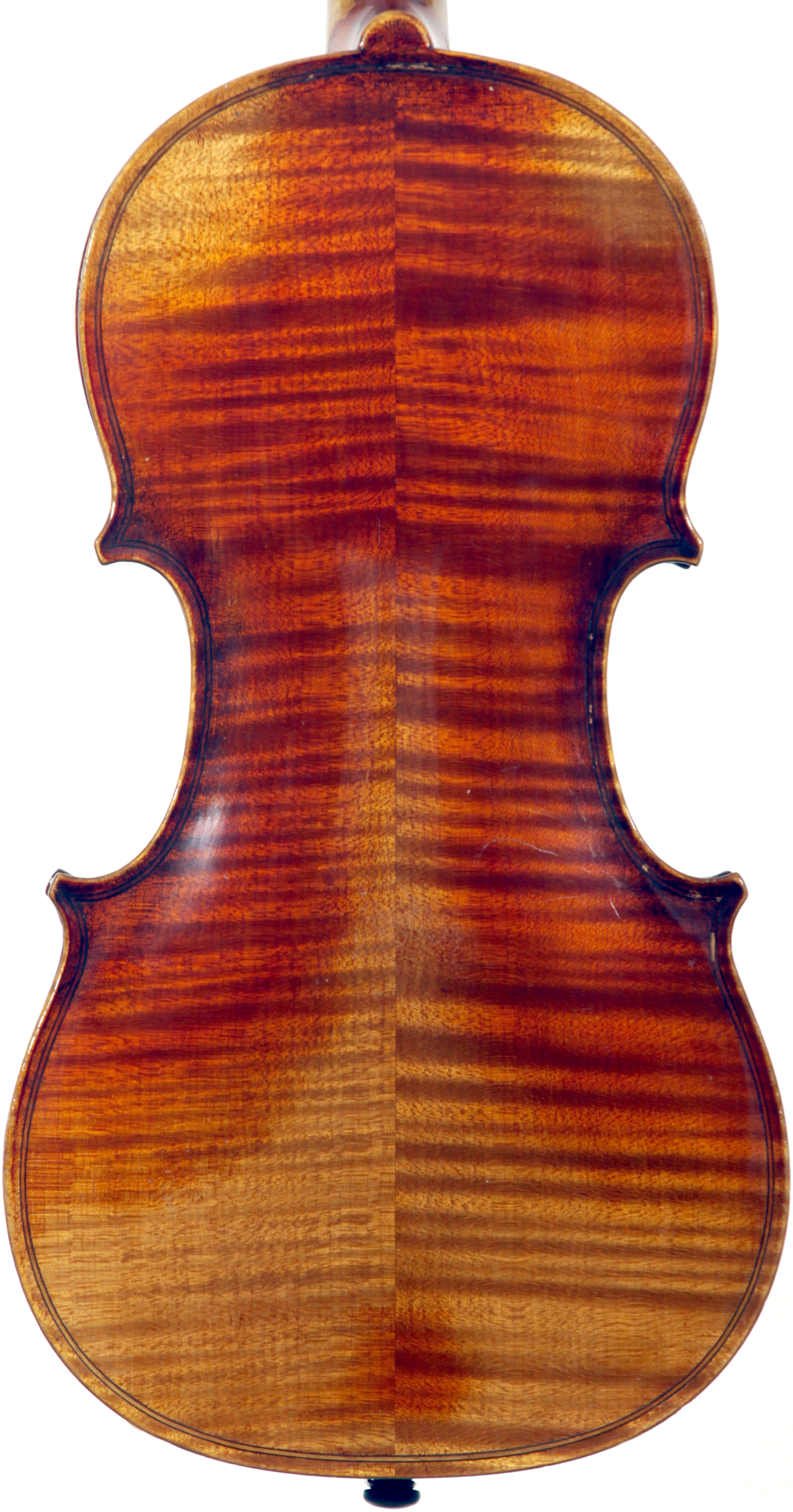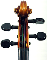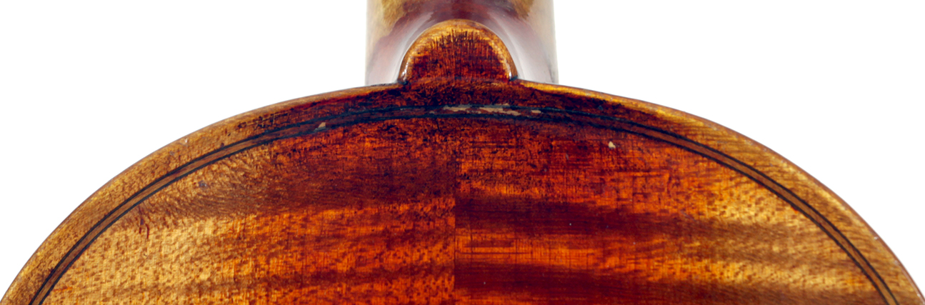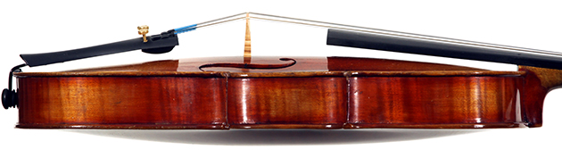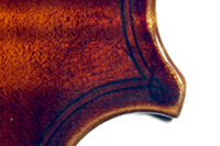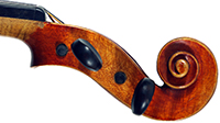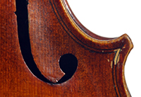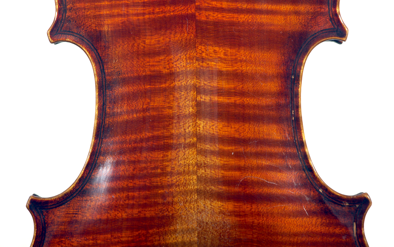 One notices the beautiful well-flamed maple used in the two-piece back, ribs, neck and scroll, along with the lovely amber varnish that beautifully compliments the wood. Workmanship throughout is refined with attention to detail.