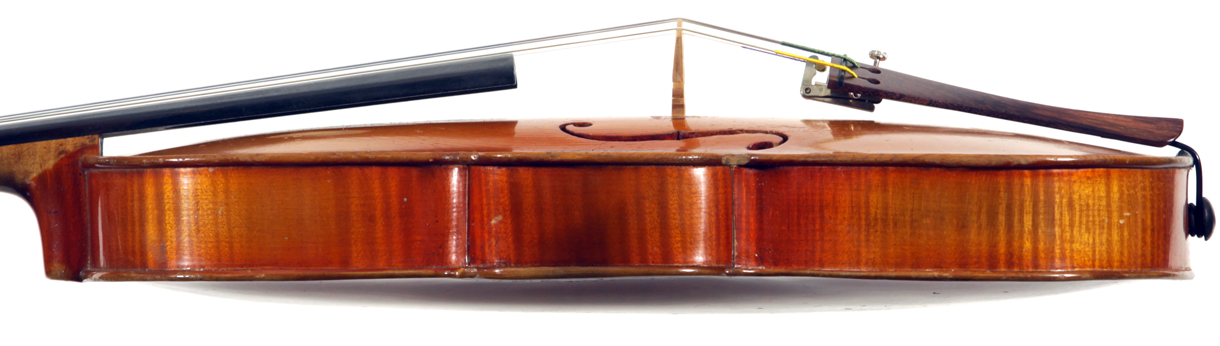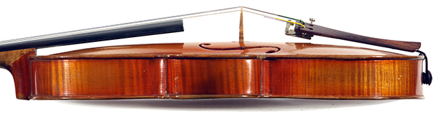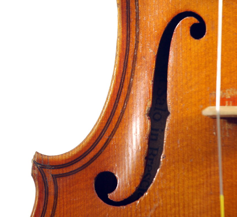 This is a responsive instrument with big tone, easy to play on. This violin is manifestly a commercial reproduction of the work of Gaspar Da Salo. General workmanship in the volute, the Fs, purfling and particularly the varnish is characteristic of German trade work. The label is purely generic, dated 1545, but this violin has nothing to do with that maker's work.