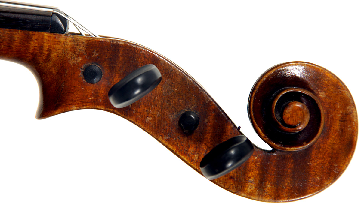 This viola bears a generic Stradivarius label used in many commercial instruments from that period and shows respect for high standards in the selection of good materials. Adding to its appeal is its relatively small size (back length of 39.2 cm), which indicates that it was made with a smaller person in mind.