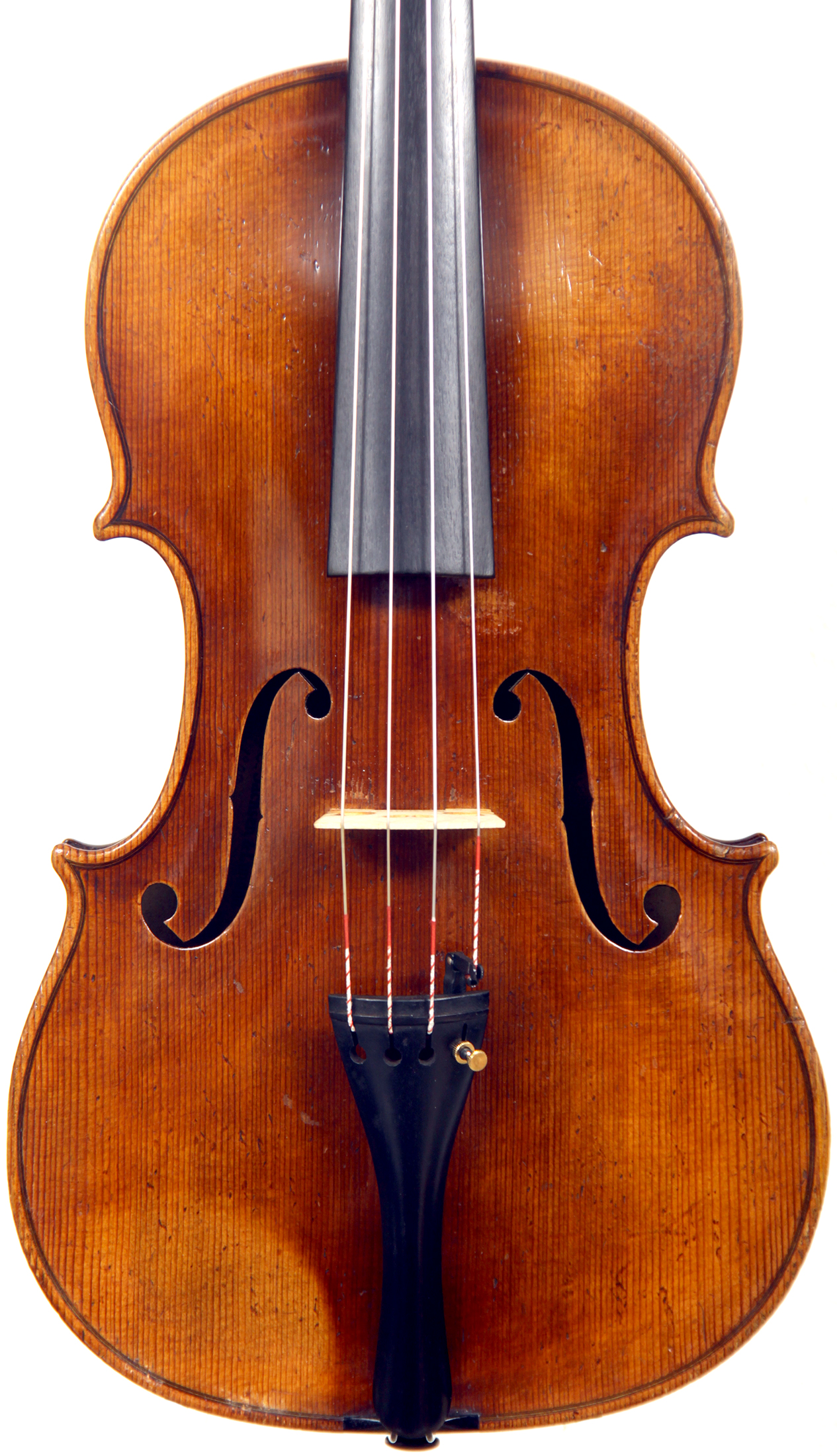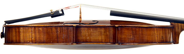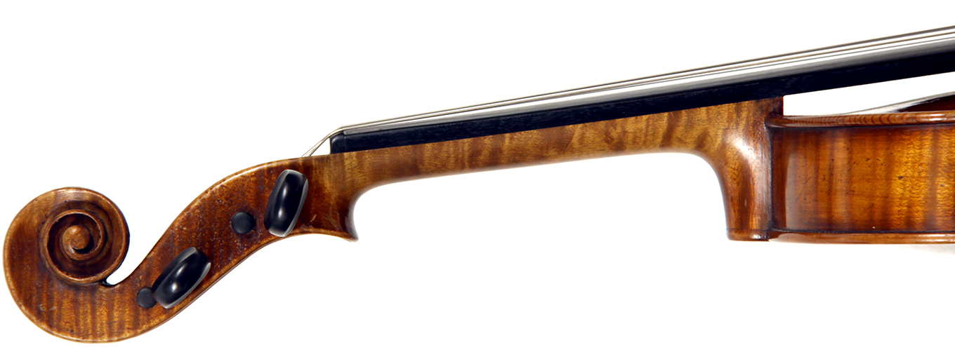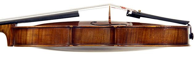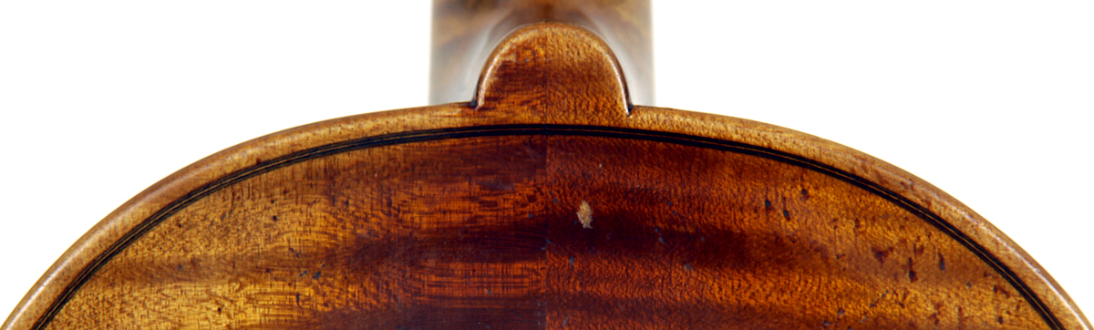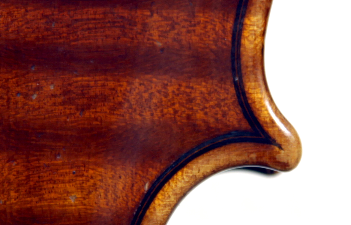 Workmanship throughout is excellent. The scroll is elegant and very refined. The Fs are beautifully proportioned and the purfling is well traced. The cornerwork is impeccable with superb mitres. It is lightly antiqued, which adds to the appeal.