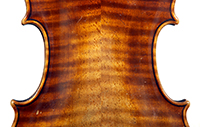 The choice of materials and the standard of workmanship in this viola are exceptionally high, culminating in a very attractive instrument with immediate appeal. The two-piece back shows a mildly flamed maple of medium curl, whereas the ribs, neck and scroll are all of more distinct flame with a narrower curl. The top is of superb tone spruce with a medium grain throughout. The oil varnish is truly beautiful - light brown and of high transparency.