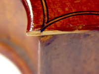 Atze Sijtsma was a respected Dutch violin maker based in Harlingen. I could not find biographical information about him (except for a photo from an filmed interview), but this violin clearly speaks of an experienced hand showing mastery of important aspects of fine lutherie. I'm particularly impressed by the exceptionally fine tracing of the purfling and outstanding cornerwork.