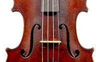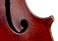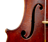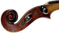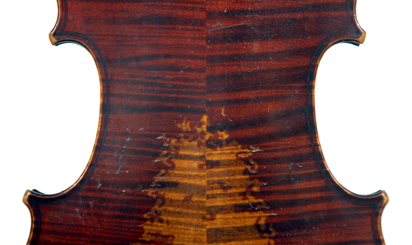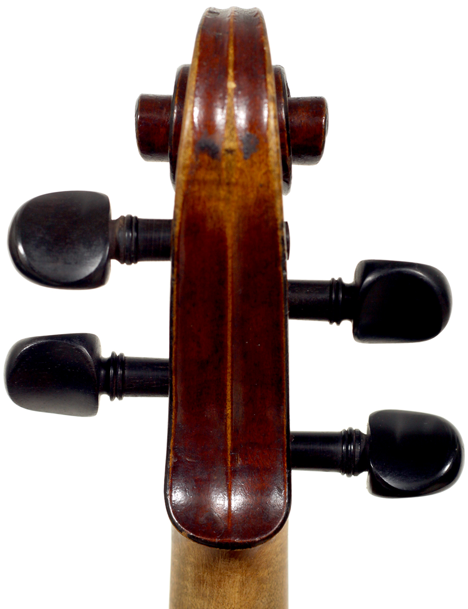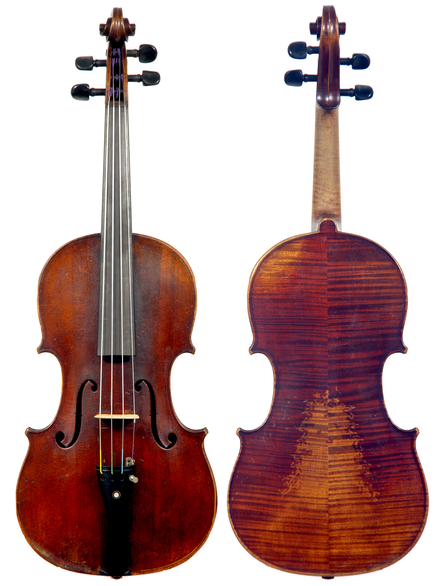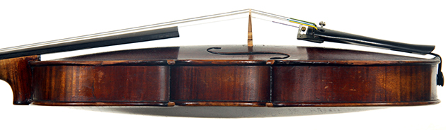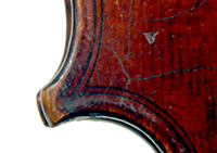This violin is in superb condition, completely free from cracks or evident repairs. The varnish shows craquelure, probably deliberately induced as part of the antiquing process.