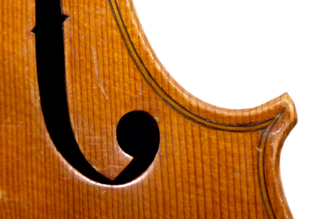 In this violin one is struck by a high level of discernment in choice of materials, fine workmanship throughout and great attention to detail, noticeably in the purfling and cornerwork, with its excellent mitres.