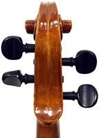 One notices the attractive nicely flamed maple used in the two-piece back, ribs, neck and scroll, along with the lovely pale golden-brown spirit varnish of high transparency that allows one to admire the wood. The top is of high-grade tone spruce with very even medium-to-narrow grain.