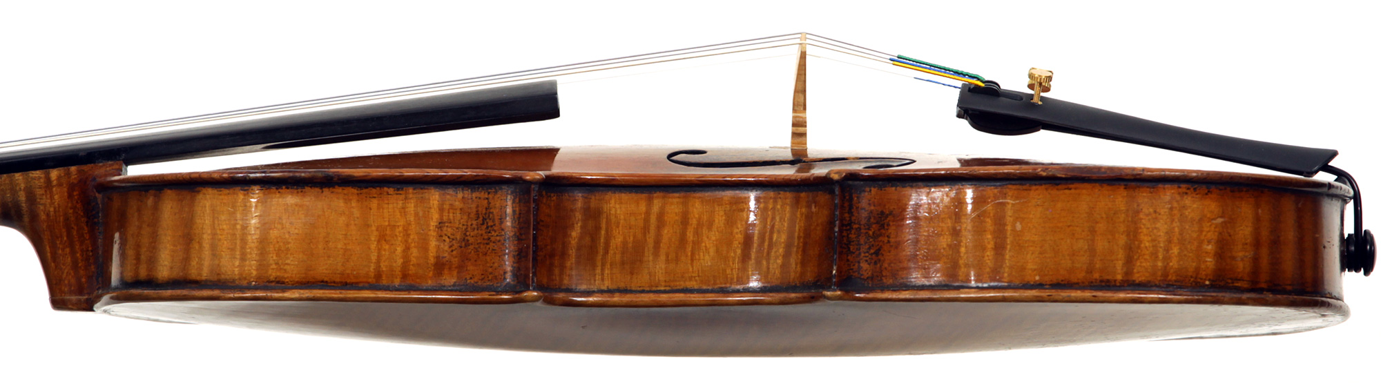 This violin is characteristic of the high standards in violin making maintained in the German trade studios of the 1920's and 30's. It is fitted with a generic Stradivarius label and was considerably antiqued. I estimate it to have been made around 1930.