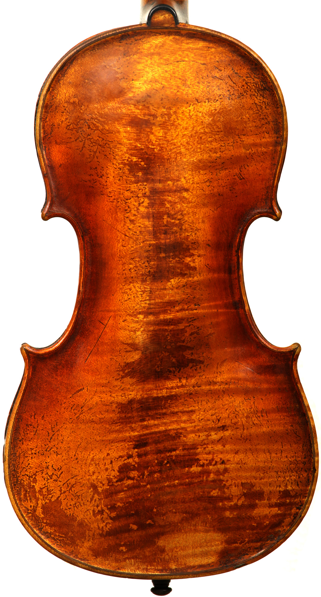Adding to that, in this violin one is aware of extreme deliberate antiquing, evident in the superficial manipulation of the varnish, using all such known techniques to achieve an appearance of being much older than it is. Although such antiquing was commonplace in commercial workshops, the extent and manner in which this was done here, is consistent with work associated specifically with the Caussin school and some commercial studios in Mirecourt during the late 19th century - and does not exclude Markneukirchen workshops.