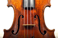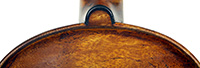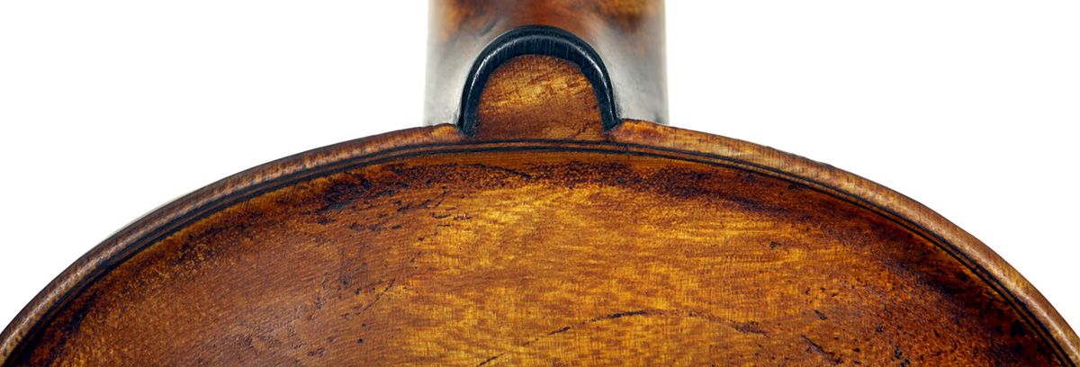 This instrument follows the Stradivari model. Workmanship in this violin is refined throughout. One is impressed by the superb tracing of purfling and cornerwork. The one-piece back clearly is of rather broad curl. The top is of excellent tone spruce, with very narrow grain at the centre line, widening slightly to the flanks. The 6 rib-pieces are unmatched and somewhat plain, except for the two in the upper bout, which are slightly flamed. The oil-based varnish is a nice warm golden colour with a touch of red, over a yellow ground.