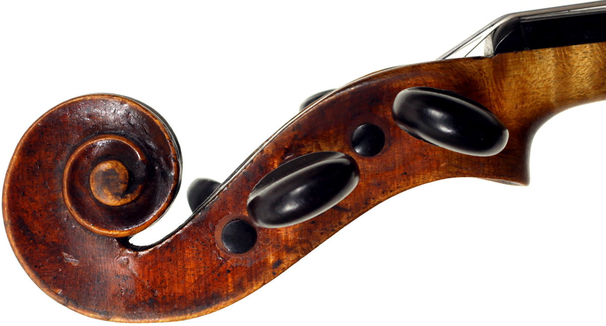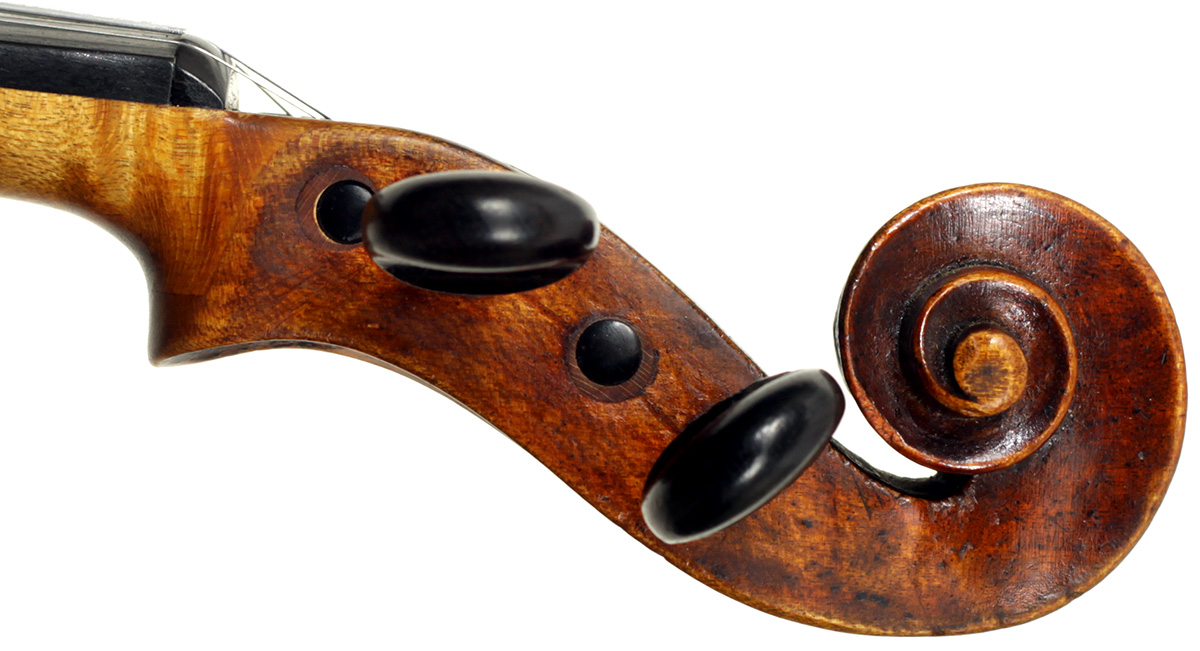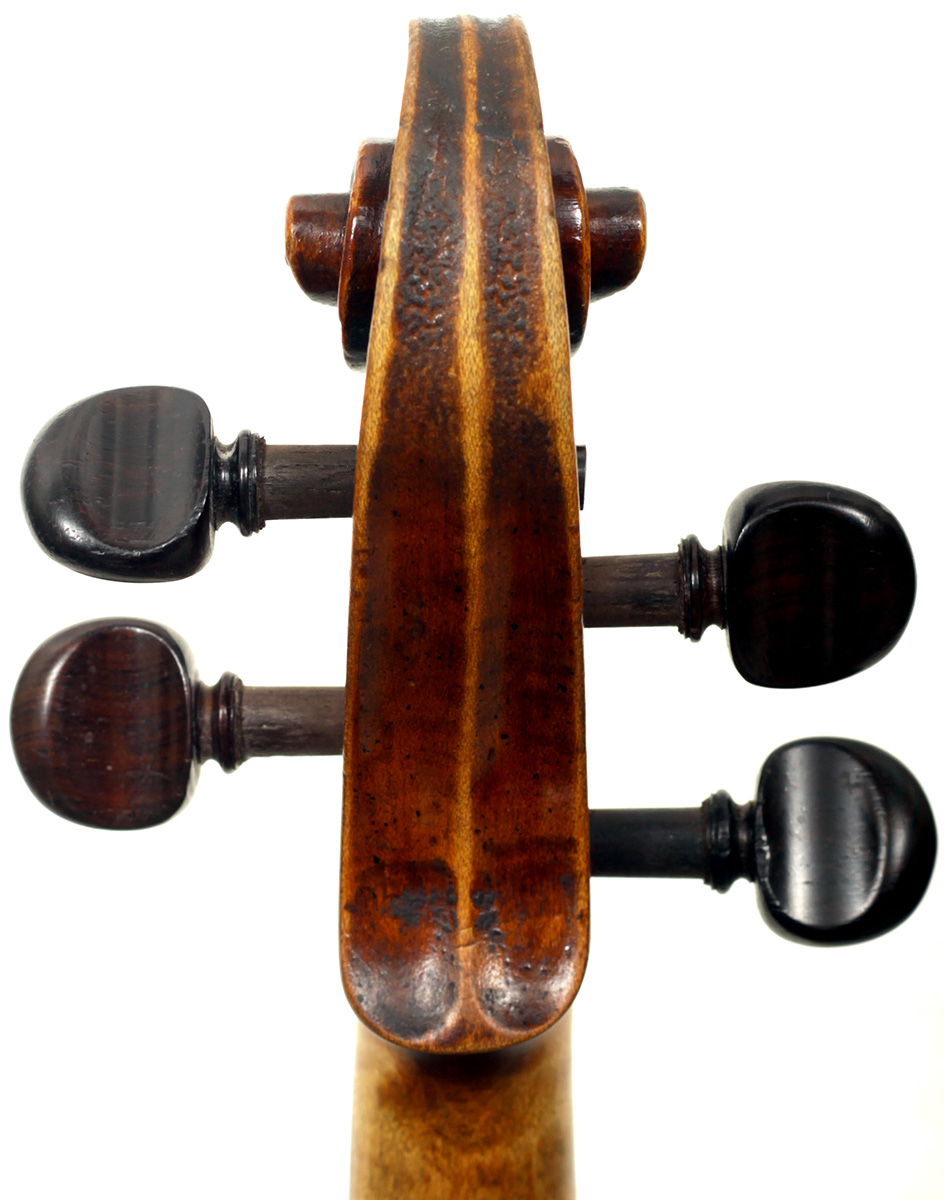 It has a superbly executed neck graft and ebony crown on the neck button. All pegholes are rebushed.