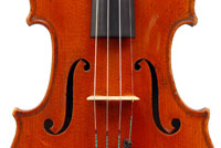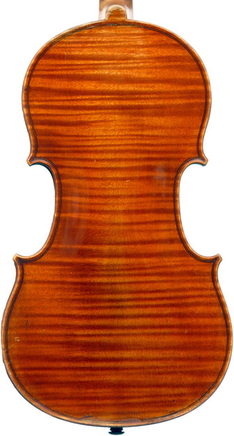 The top is of fine medium grained spruce; the one-piece back is of beautifully flamed maple. The craftmanship throughout is superb, reflected in a beautiful scroll and excellent purfling.
