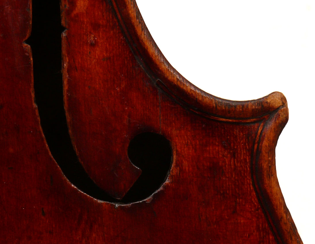 The purfling is superb and the mitres are faultless - the corners are of a craftmanship or a very high standard with fabulously executed bee-stings. More than anything it is this aspect of the violin, combined with its exceptional tonal properties, that show its origin to be by the hand of an unusually skilled maker.