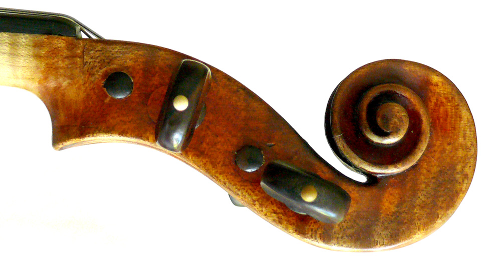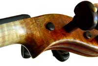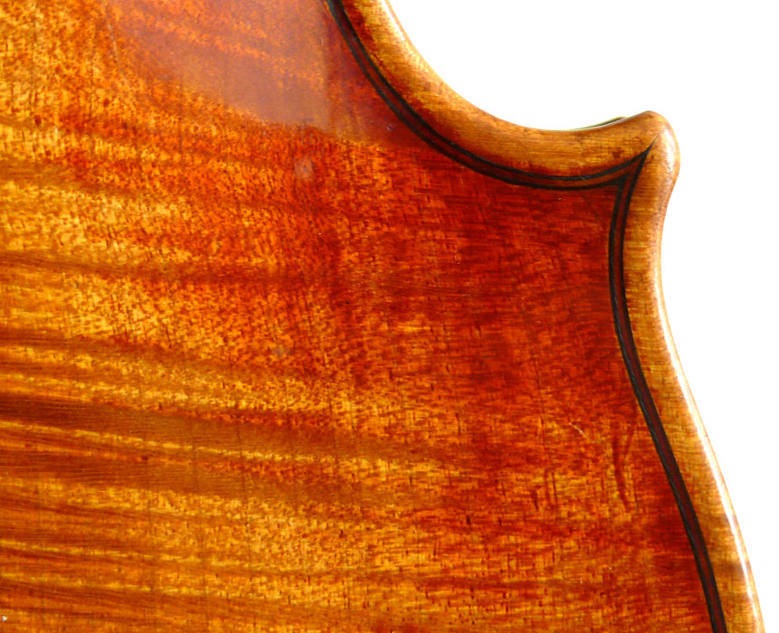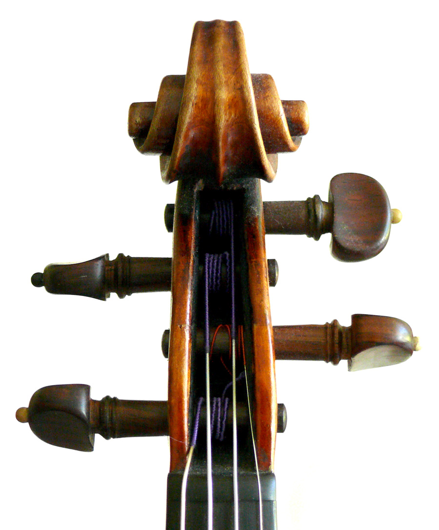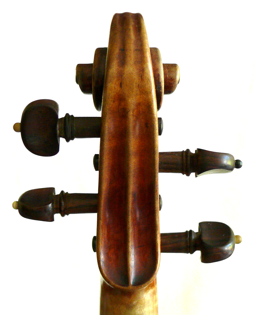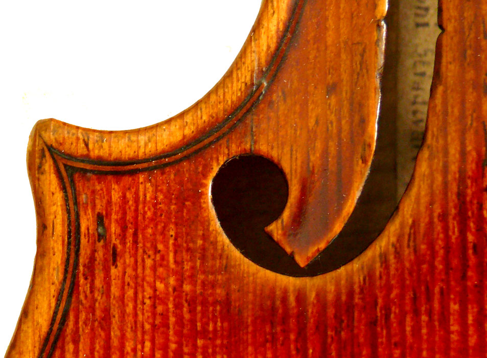 This violin, bearing a label ("G. B. Guadagnini Torino, 1779") is a concert instrument of the highest order, and a fine testimony of all the superlatives written about the Vollers. Until the authority, Claude Lebet in Rome, identified the violin as a Voller (and certified it as such), it was thought to be the work of Pressenda. It is an exceptionally beautiful violin: the two-piece back, ribs and scroll are of well-flamed maple with a distinct medium curl. The top is of medium to wide-grained tone spruce. Purfling and corner work are remarkably executed. The varnish is a beautiful transparent red-gold that greatly enhances the beauty of the materials.