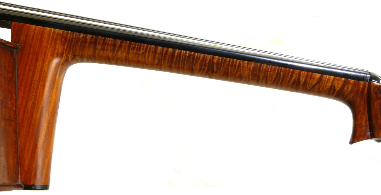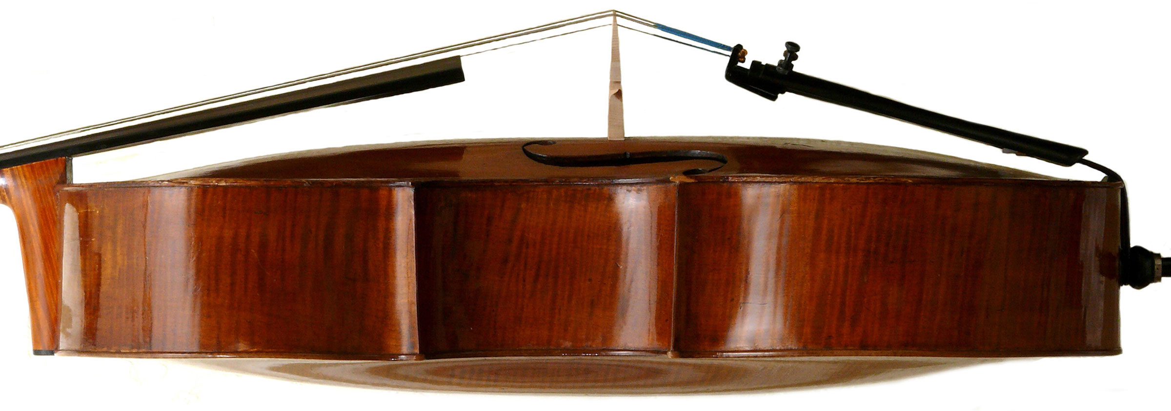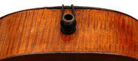 An interesting characteristic is that the lower rib is made in one piece, from c-bout to c-bout (photo). At present the instrument is fitted with an old-style ebony endpin.