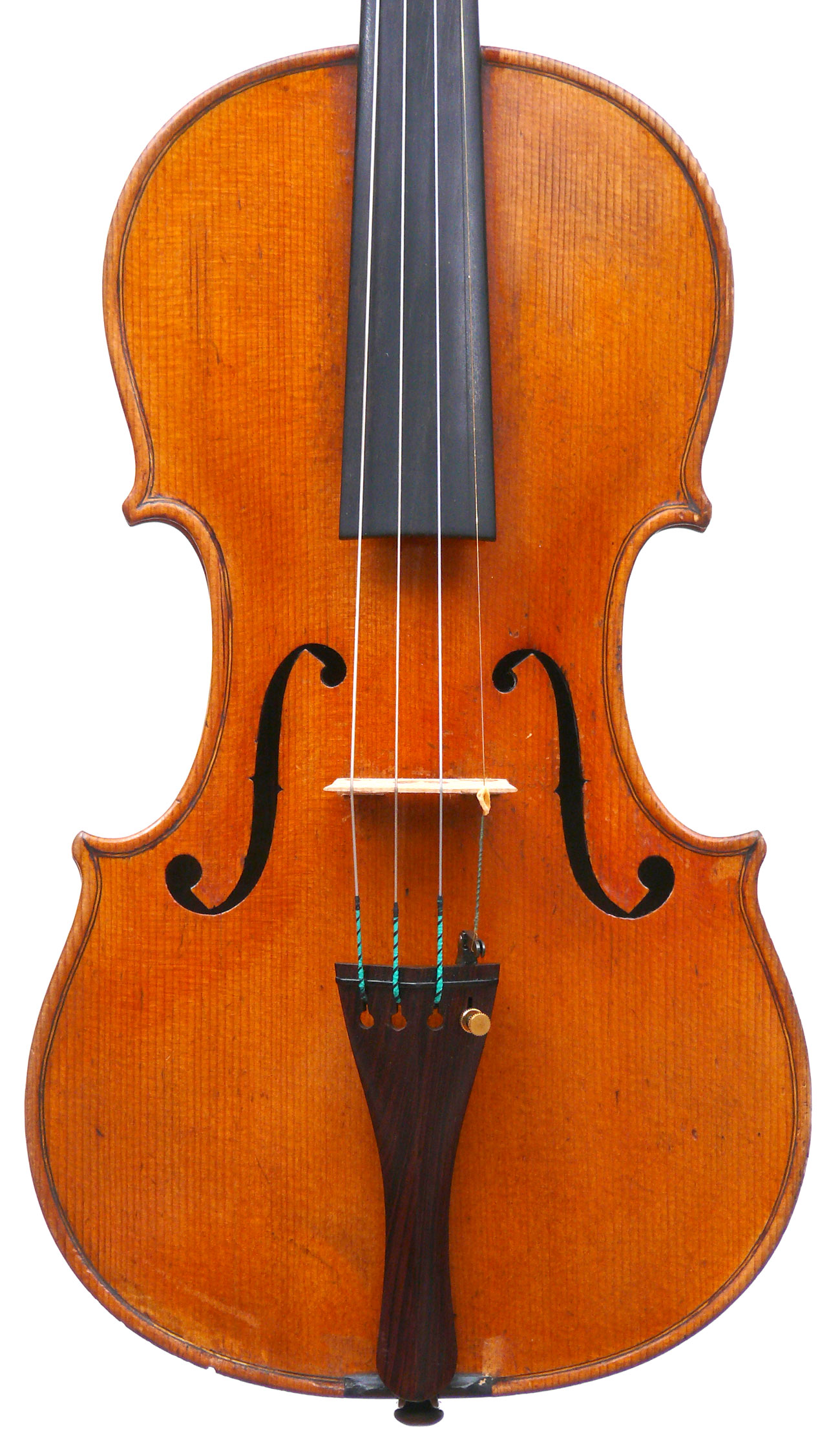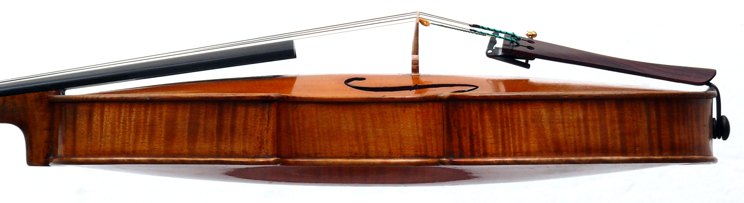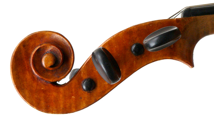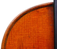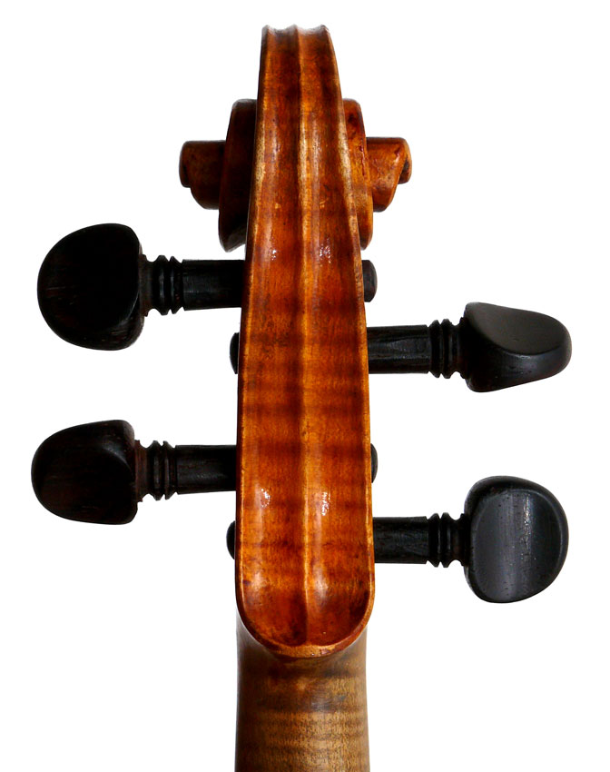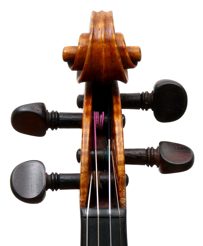 Furthermore, it is really beautiful. The photography doesn't do justice to the beauty of the varnish, particularly on the back. The entire violin is covered in the most exquisite golden honey coloured, soft oil-based varnish, severely worn in places. The modelling is unusually elegant, balanced and crisp, the scroll is superbly refined and balanced. These features, along with its superb tonal properties, make this a violinist's violin of a high order.