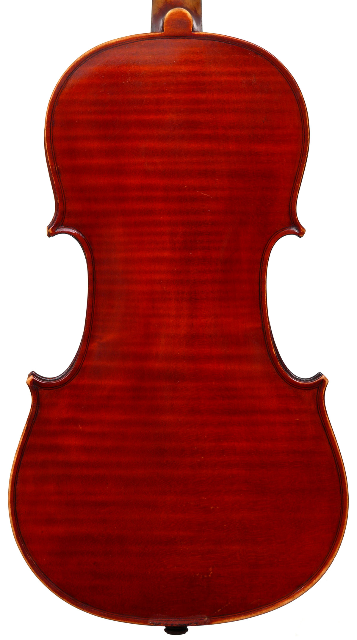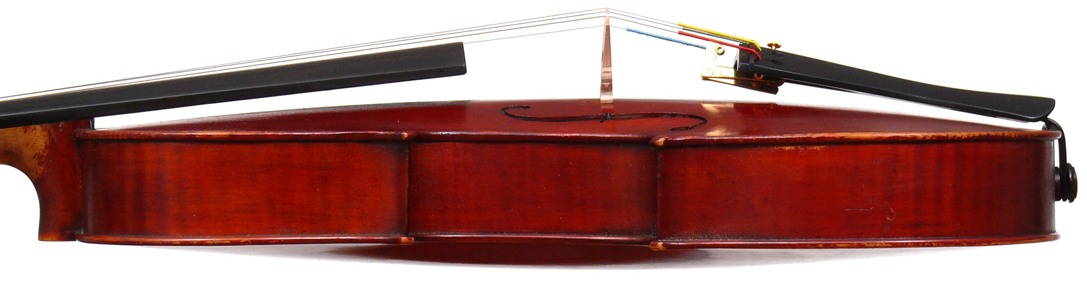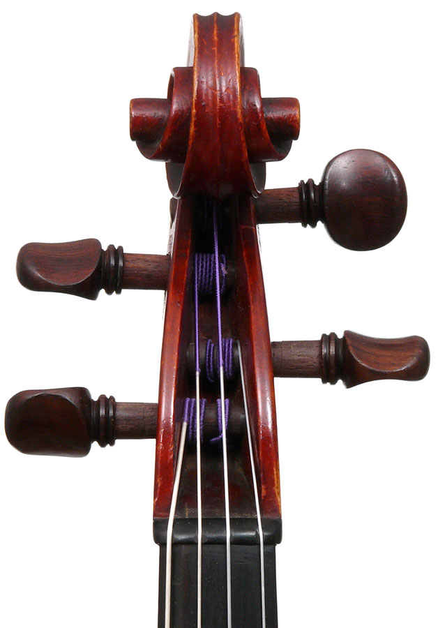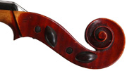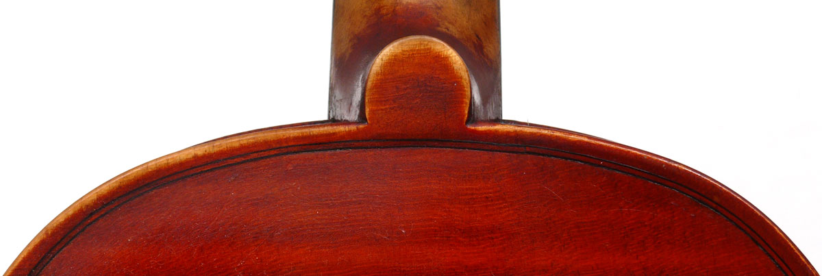 This viola was recently brought from England, and is characteristic of Bellingham's work. What strikes one immediately is the beautiful one-piece back and the extremely attractive red varnish - transparent and favoring clear observation of the wood. The scroll is beautifully elegant and f-holes are well-proportioned and crisp. Purfling is nicely traced and shows a masterful and confident hand. This is altogether a very good-looking instrument.