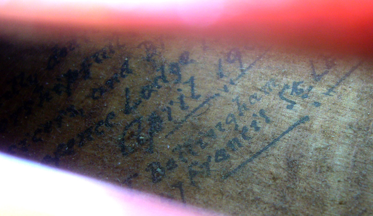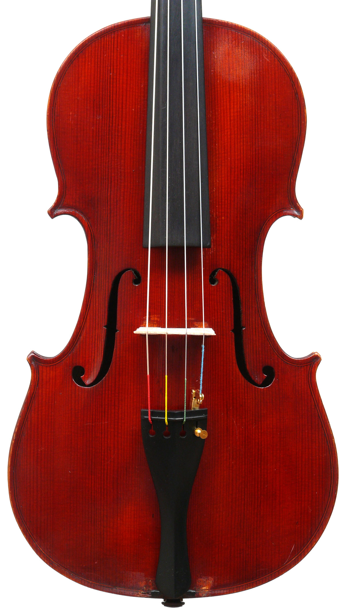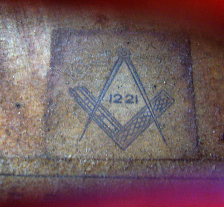Bellingham had the habit of dedicating each of his instruments to a noteworthy person whom he felt would appreciate the quality of the instrument. He did this with their permission. It appears that Bellingham was a freemason - this viola has the masonic emblem for lodge 1221 glued into tbe back and also has the following inscribed by hand in the back: 'Respectfully dedicated to the Worshipfull Masters, Officers and Brethren of Defence Lodge 1221, Leeds. April 1908. T. J. Bellingham. 47 Franer's Str. Leeds.'. It also bears Bellingham's label.