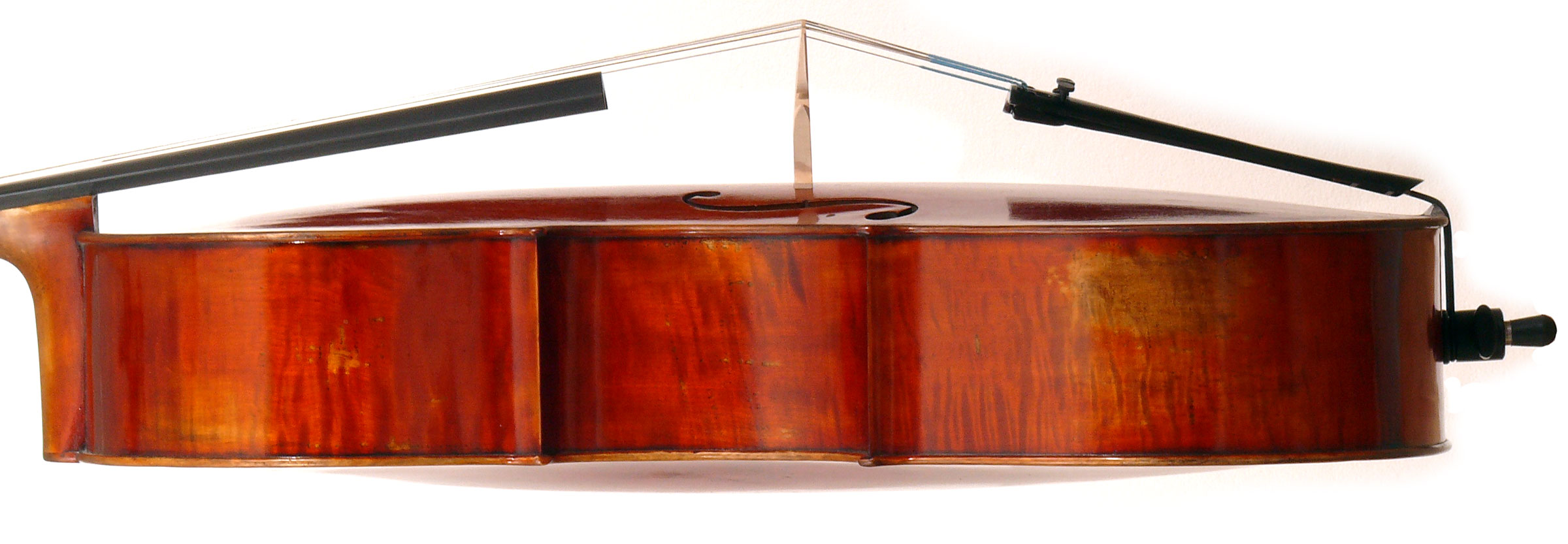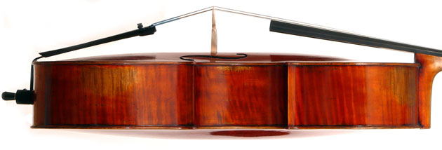 This cello represents the top-end trade fare that is increasingly establishing itself in the international arena where excellent workmanship, very good tone and fine European materials meet in a good, satisfying, responsive and above all, affordable, instrument. These instruments compete with the best output of some leading master instrument builders, providing an accessible alternative to the expensive fine hand made instruments produced in some of the leading European violinmaking studios.