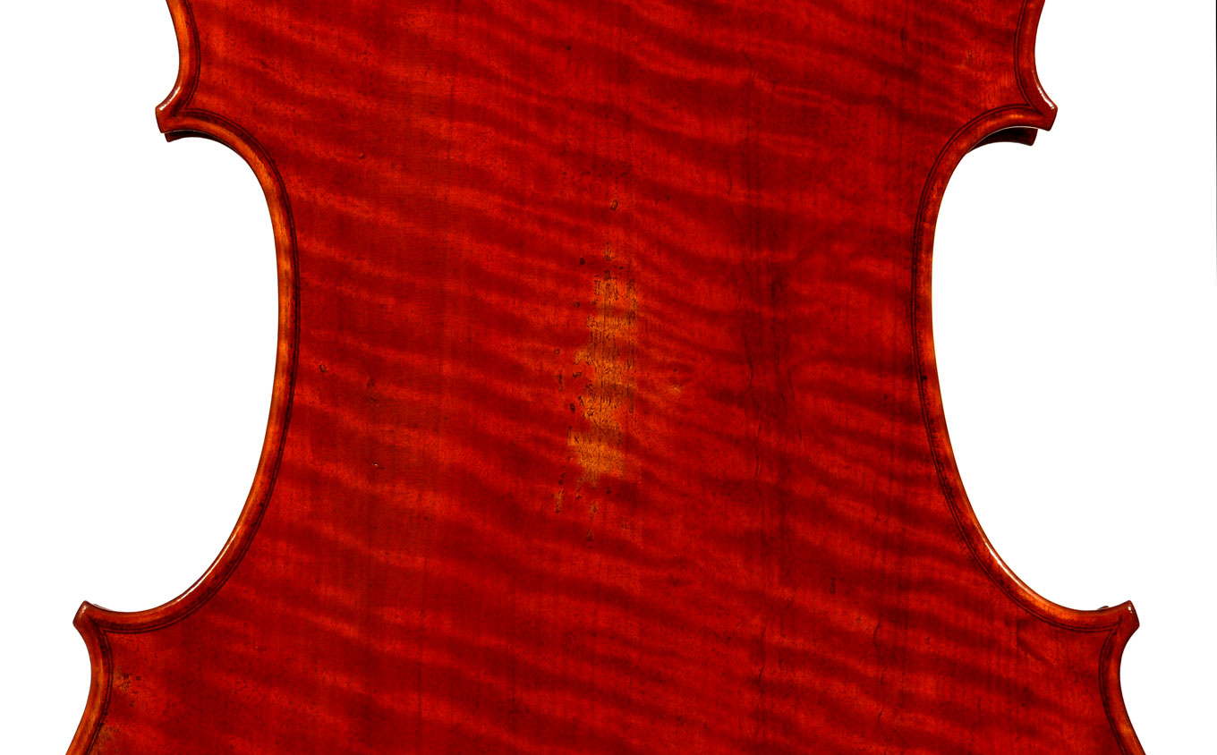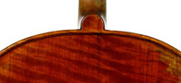 A striking feature of this particular cello is its one-piece back - of nicely flamed maple with a mild medium curl (see photos). This is attractive and desirable, as it is difficult and costly to find a single piece of wood big enough for a complete cello back. And this cello has good tone - even throughout and speaking with openness and responsiveness, easy to play on. The materials are well chosen - the sides appear to be matched with the wood of the beautiful one-piece back, showing attention to detail and to the traditions of good lutherie. Workmanship is very good throughout - tidy work in the corners and purfling neatly traced. Varnish is a strong amber to red-brown oil-based application that really nicely compliments the wood.