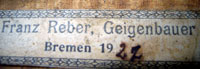 Franz Reber (1880 - ?) was initially apprenticed to Wilhelm Kretzschmann and his son. Upon the deaths of both those teachers, he continued studying under Hans Jaeger. He later also studied with J. H. Schult in Lübeck and with Georg Winterling in Hamburg. In 1904 he set up his own studio in Bremen.