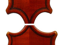 It appears from the somewhat flat arching and the other dimensions of this violin that it may have been made from the same mold used for the 1955 Galea that was Galea's personal violin and which later became the property of the important violinist, George Walker, until his death (No 0670 displayed in the Archive page of this website). This violin is well-toned with the clear, clean, balanced tone one always associates with this superb violin maker.