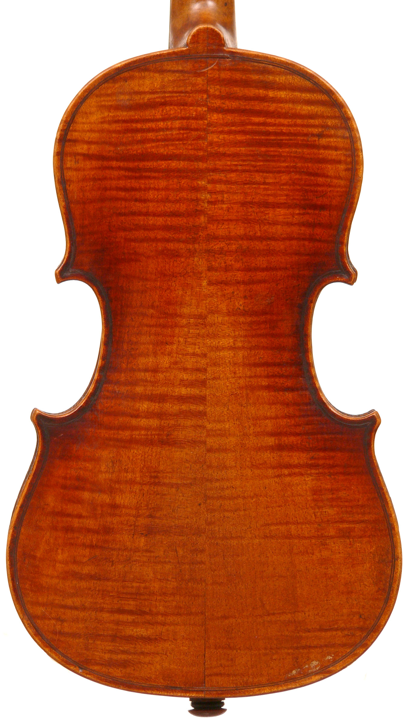 Excellent. A minor crack in the lower treble flank has been professionally repaired, along with the bottom 3 centimeters of the central seam in the back, which evidently became unstuck. That work was probably carried by J. J. van de Geest. Everything in the violin is secure. New strings and a tailpiece with built-in adjusters were recently fitted.