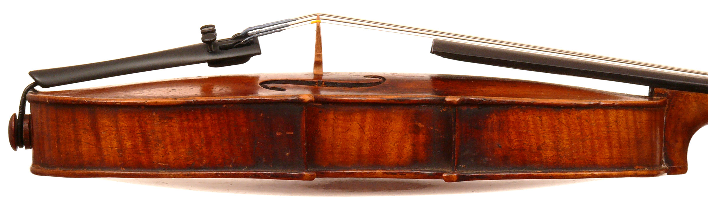 This violin was found still with the last set-up it received probably in the 1950s or 60s, done by the important Dutch violinmaker and authority, J. J. van de Geest (1899 -1974), whose bridge it still has on! The strings and tailpiece were recently replaced - it now has a tailpiece with built-in adjusters - very suitable for a student or child.The violin comes with a matching chinrest (not in the photos).