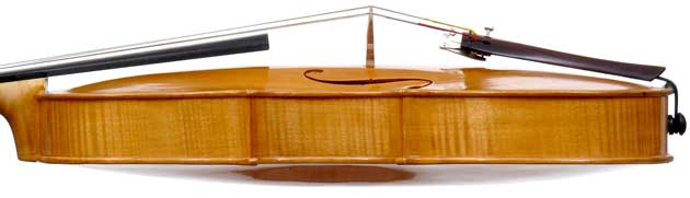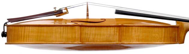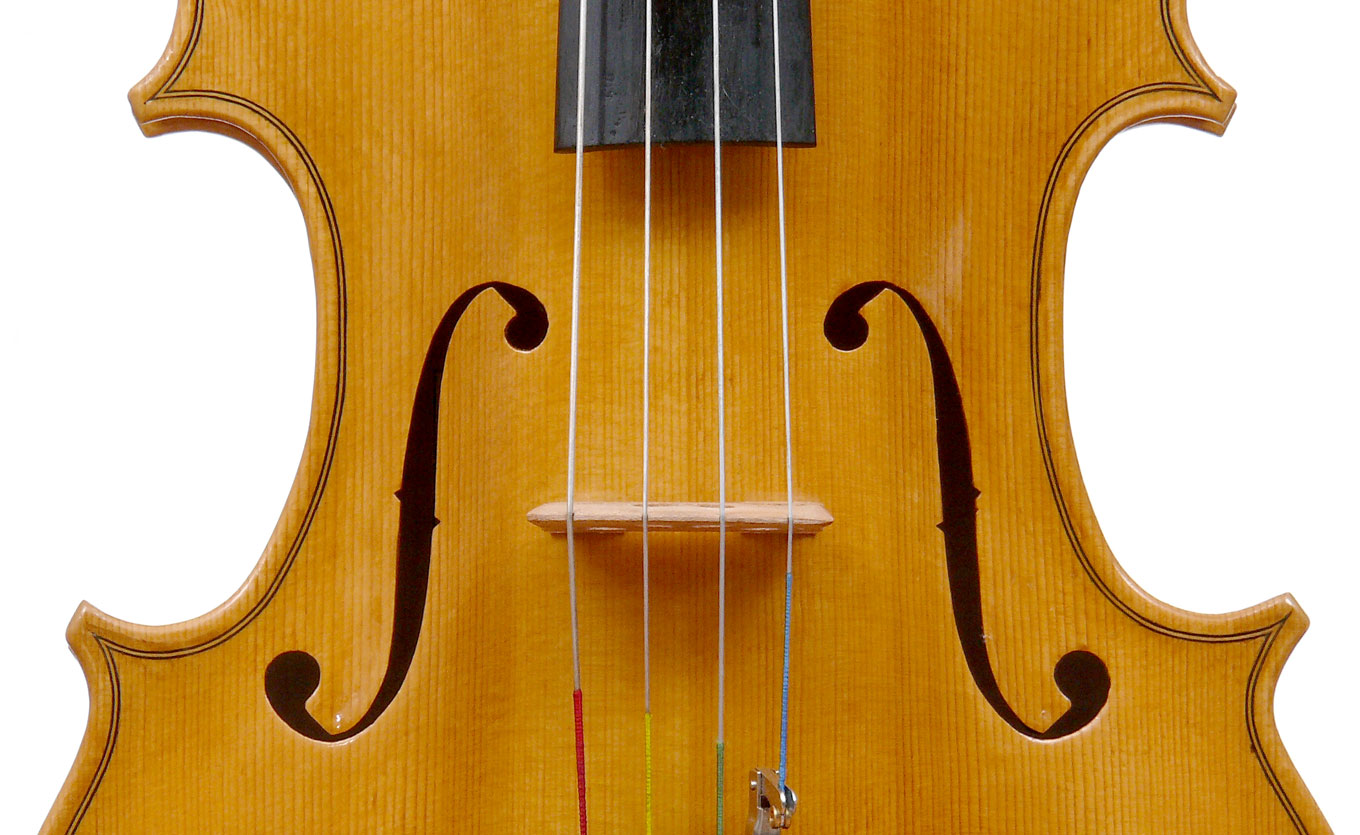 With a back length of 38.9 cm, this is a small and comfortable viola. Its shortness is compensated for by fairly wide bouts. It speaks easily with a warm tone.