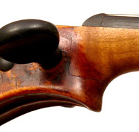 One unusual aspect - the violin has a neck graft at both ends of the neck! This is impeccably done. For some reason it was decided not to remove the neck from the body when replacing it, but rather to graft in into the previous neck's root. There is minor cracking in the button, but this could be repaired by a good craftsman.