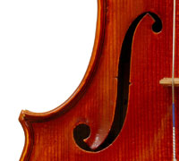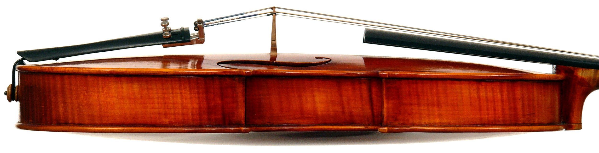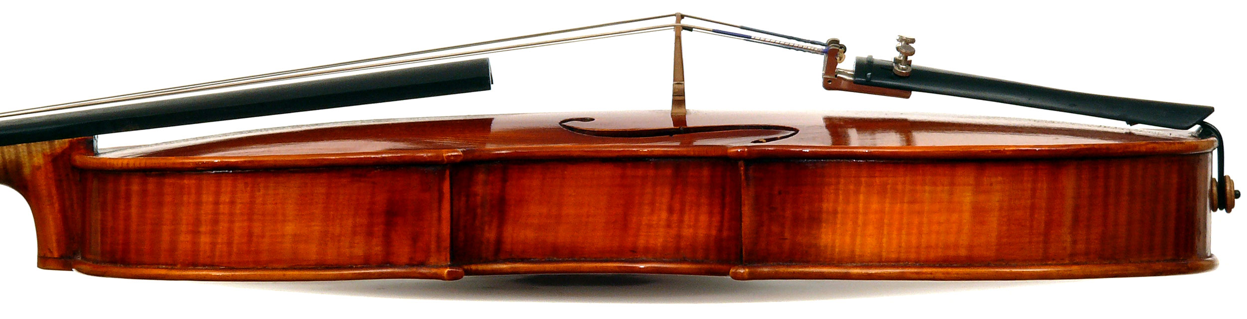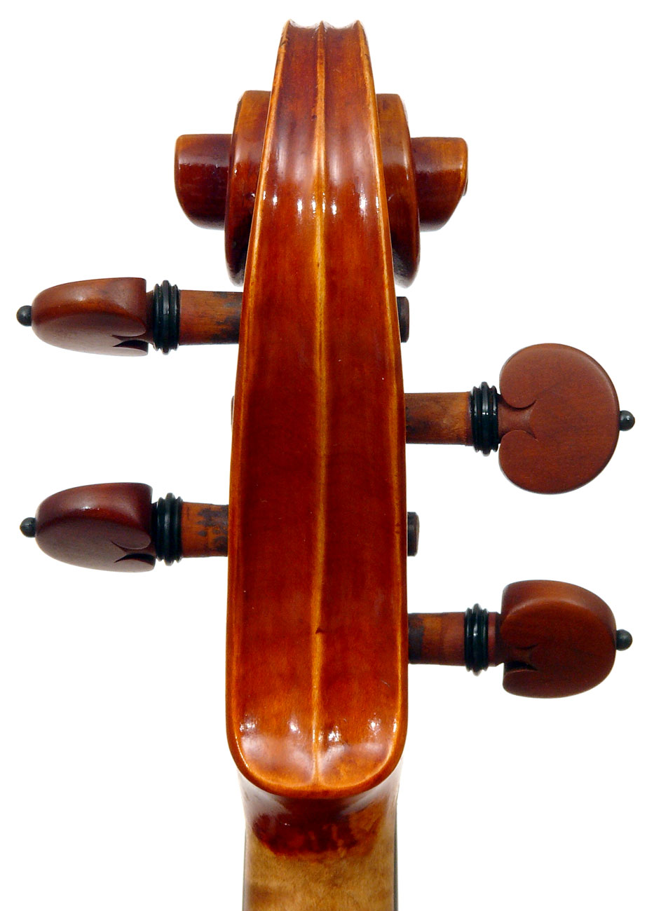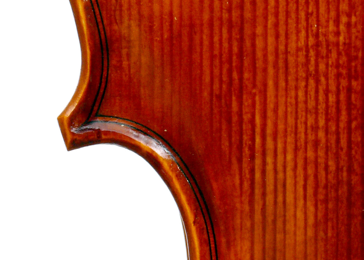 This viola is is really attractive with its rich red-brown varnish over a yellow ground. One is struck by the handsome one-piece back and the unusually elegant and well-positioned f-holes. Otherwise the instrument is characterized by excellent workmanship - crisp and steady.
