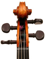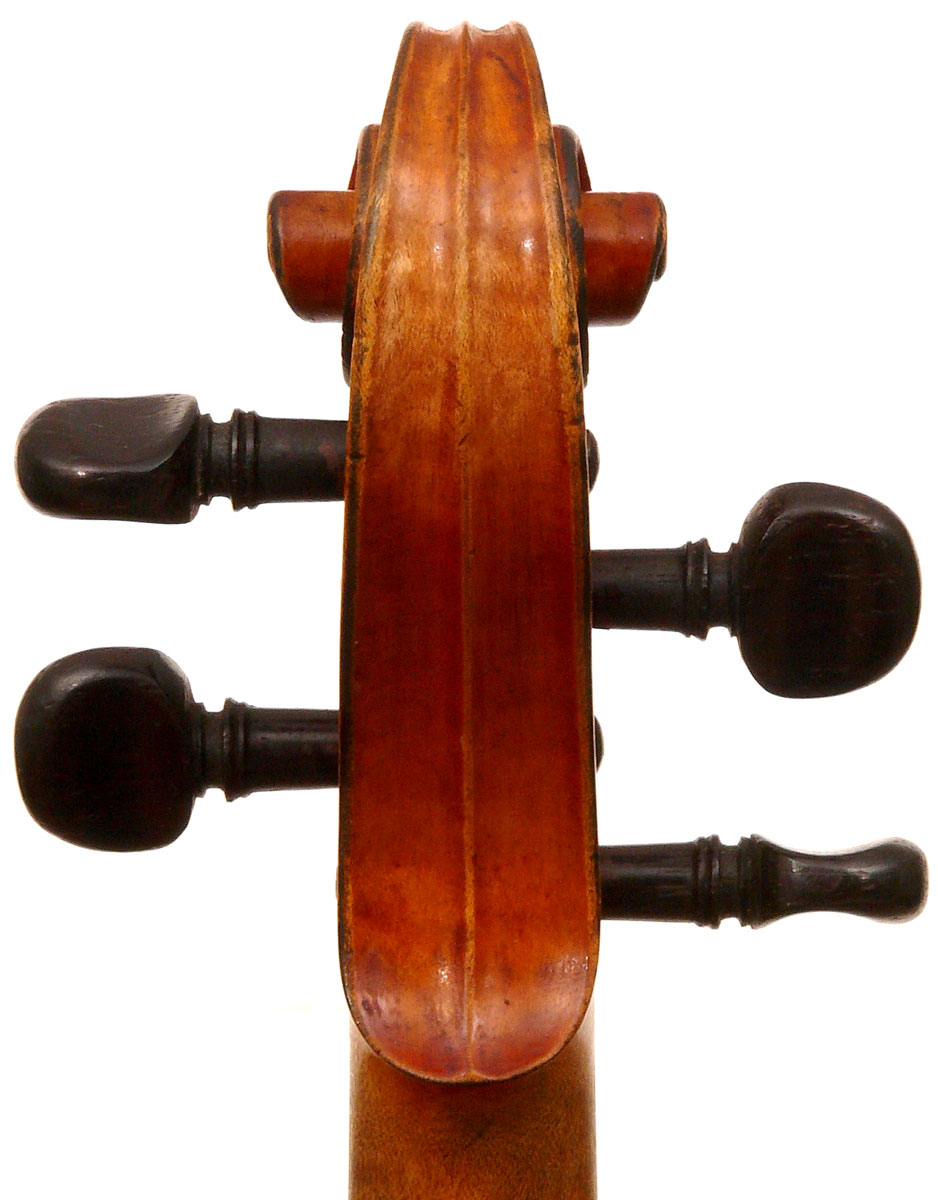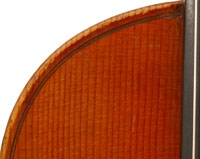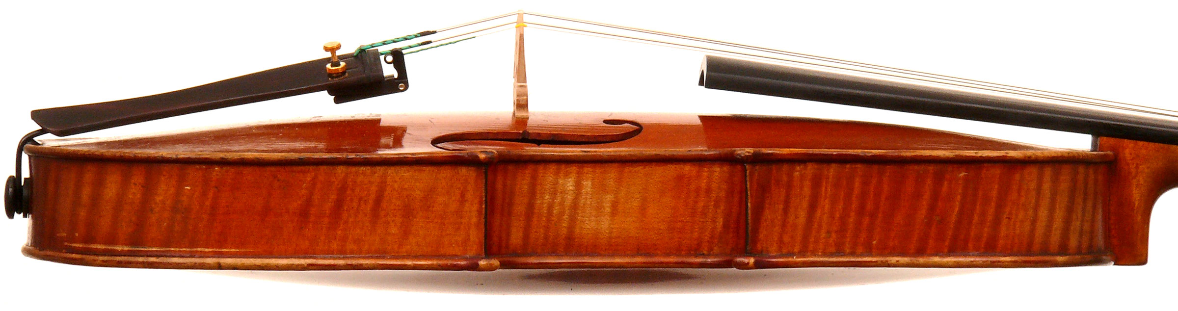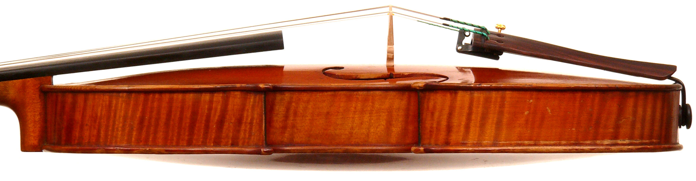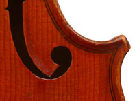 This is a beautiful violin, reflecting the most refined craftsmanship and attention to detail throughout. Not only are the materials attractive, but the attention to detail in the purfling, the mitres and just about every other aspect of good lutherie leave little to be improved on. The fs are beautifully crafted, crisp sharp work, elegant and balanced and with nicely fluted palettes. It follows the Stradivari model - beautifully outlined and elegantly proportioned.