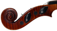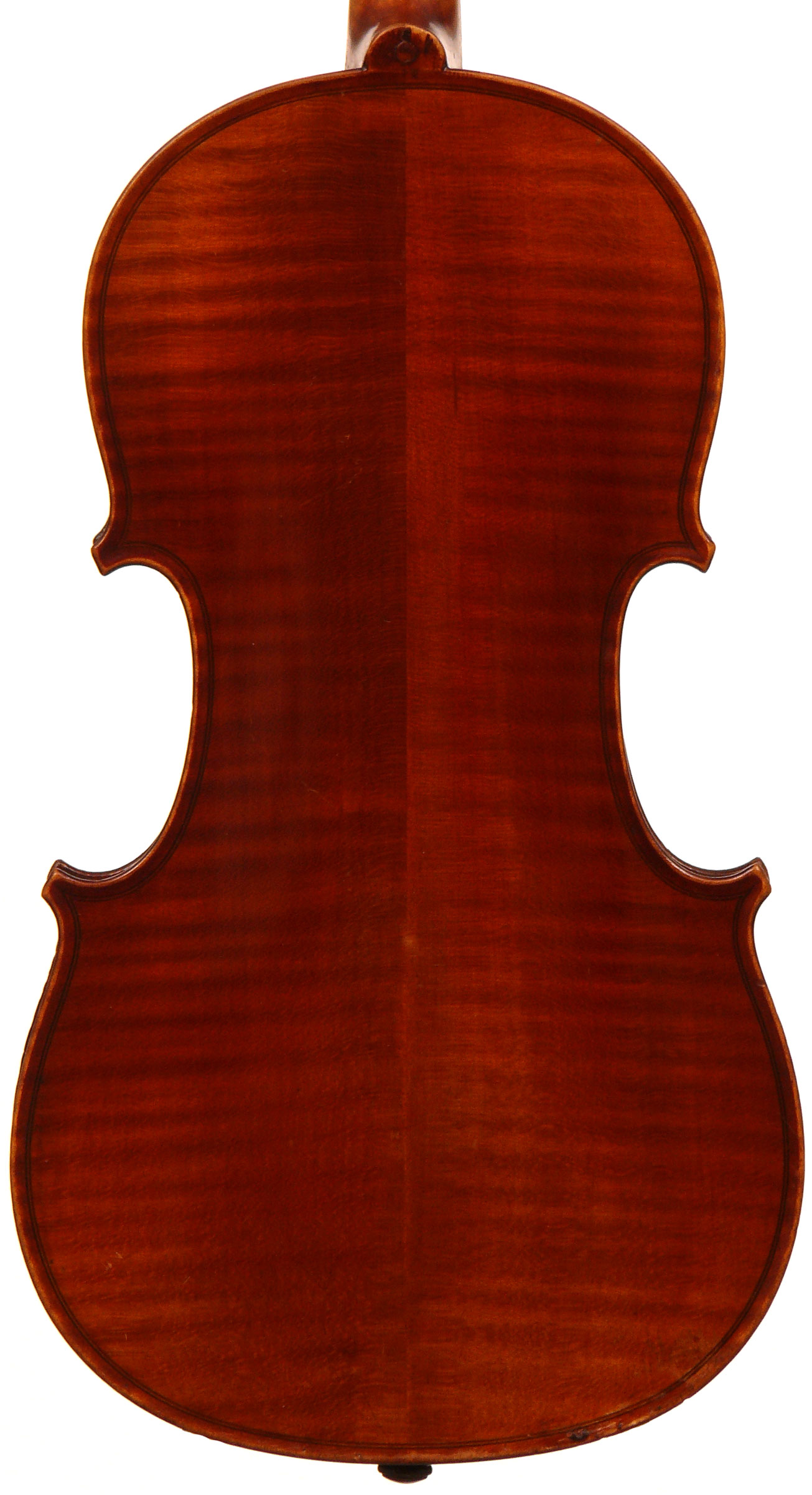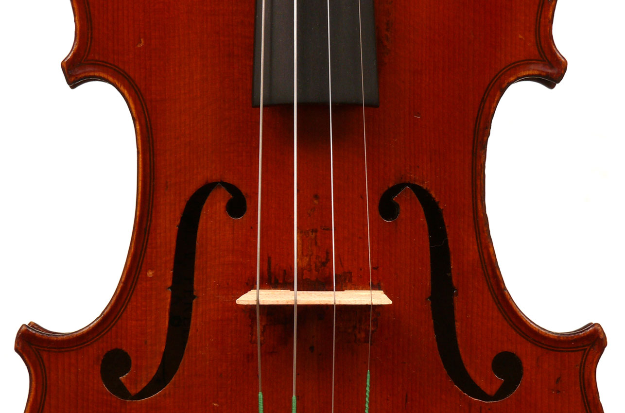 Very good. No cracks or structural damage. Some superficial marks in the varnish. A wooden pin is inserted in the button, through into the neck - this has no impact on the structural integrity of the violin. New bridge and pegs have been fitted.
