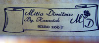 Dimitrov (b. 1974) studied violin making at the Kremona instrument studio, whereafter he improved his skills by working with numerous masters in this field. He has been designing and building his own instruments since 1998, focusing mainly on violins and violas. He works only with Balkan tone woods, having excellent sound properties. He prefers working with naturally dried maple and tone spruce and selects only the highest quality. His varnish is his own alcohol-based recipe and self-made. His work is modelled mainly on the work of the great Italian masters like Stradivari, Guarneri and Ornate, among others.