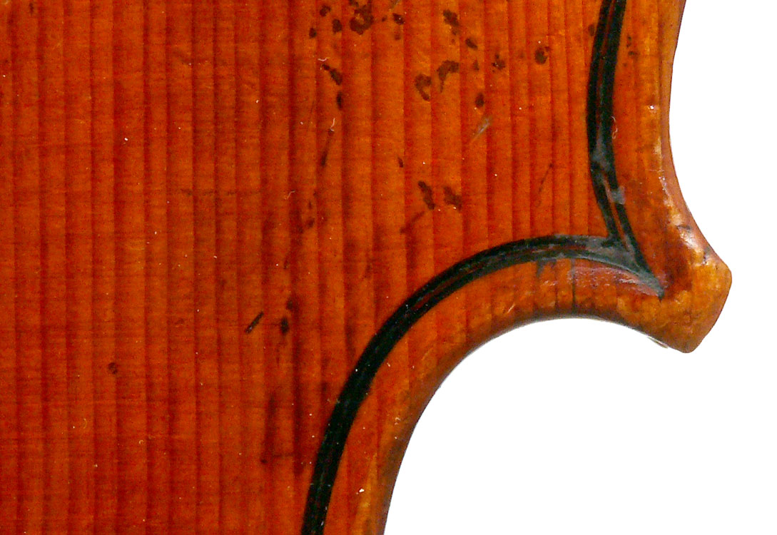 This instrument is in an exceptionally fine state, one may almost say in mint condition - it has one small benign crack next to the lower saddle, repaired and held directly by the endblock. The varnish is original - beautiful and clear honey-brown with high transparency, allowing the appreciation of woods. The marks on the top right quarter are merely superficial and typical of an instrument which had been well-used for some 140 years. The two-piece back, ribs, neck and scroll are of really nicely figured maple with a distinct medium curl - very appealing. The top is of medium grained tone spruce. The corners and purfling in this violin are truly impeccable. The Fs are superbly elegant - reminiscent of Pique's work, making the overall impression of this violin extremely pleasing on the eye.