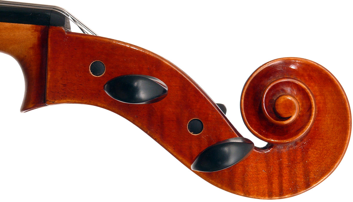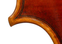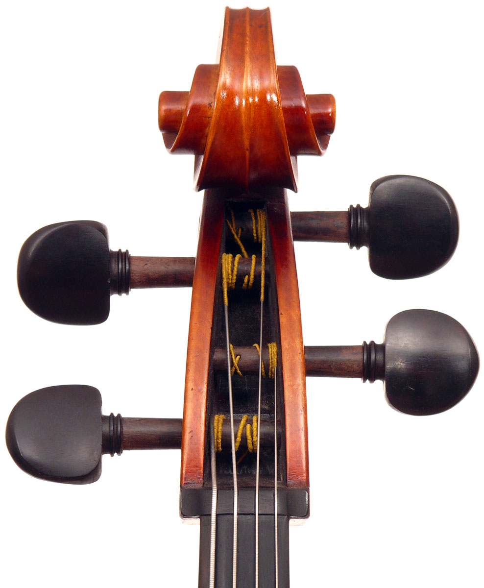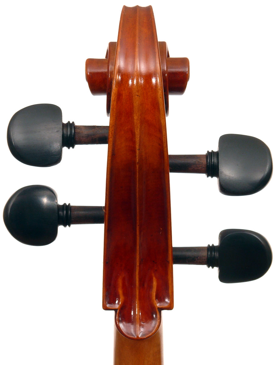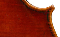 Close examination of this instrument shows remarkably tidy work with meticulous attention to detail - take a look at the photos and in particular the cornerwork which shows impeccable mitres and finish to the corner shape. The scroll is exceptionally balanced and elegant. Throughout this cello gives evidence of craftsmanship of a high order.