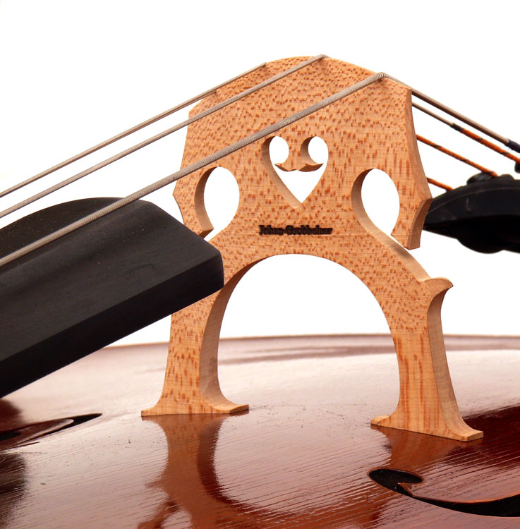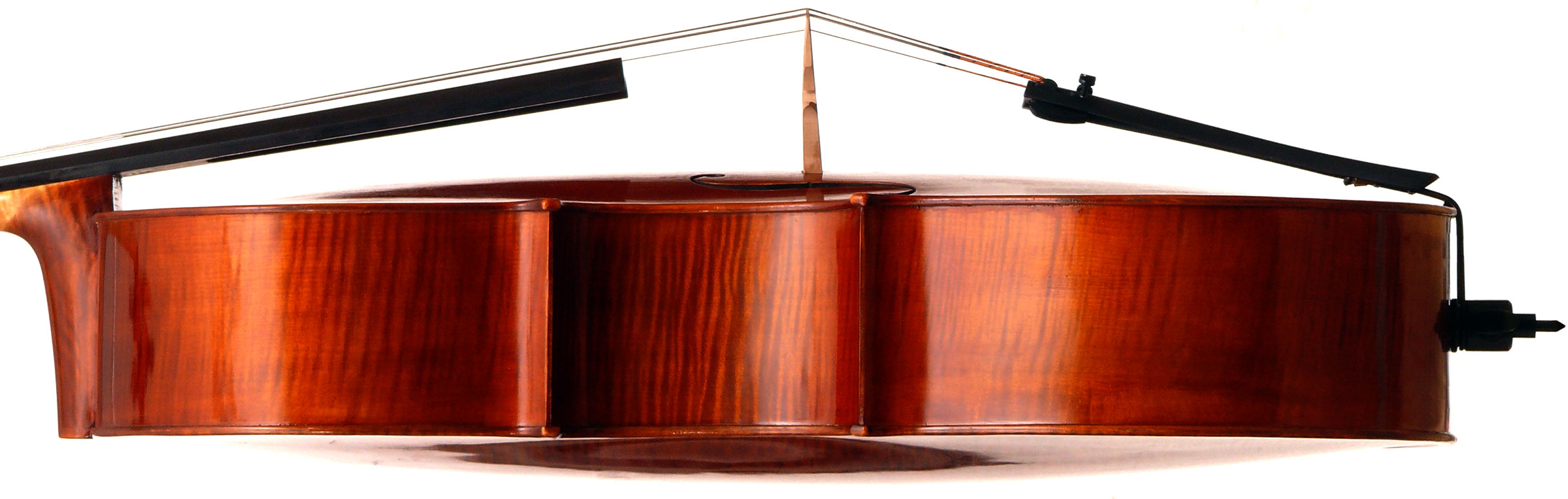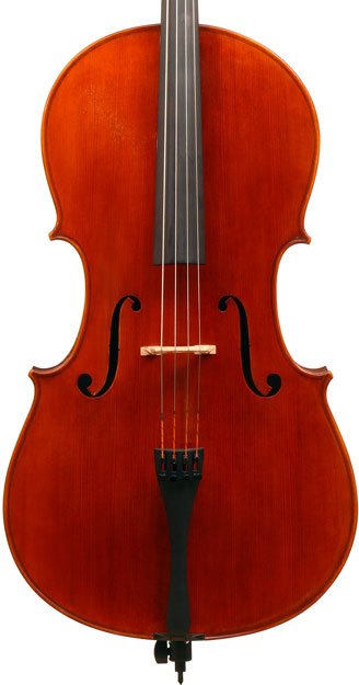 This cello is made of attractive materials and is at first glance an appealing instrument which follows the Stradivari model. Its good looks are matched also by its tonal properties which are strong and responsive - an easy instrument to play on. The tone is of good solo quality - balanced and with carrying power and penetration.