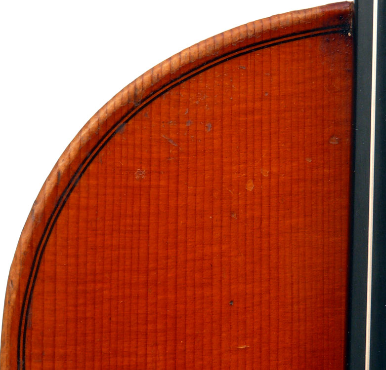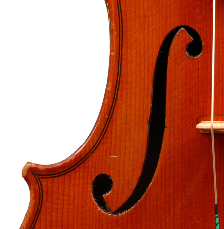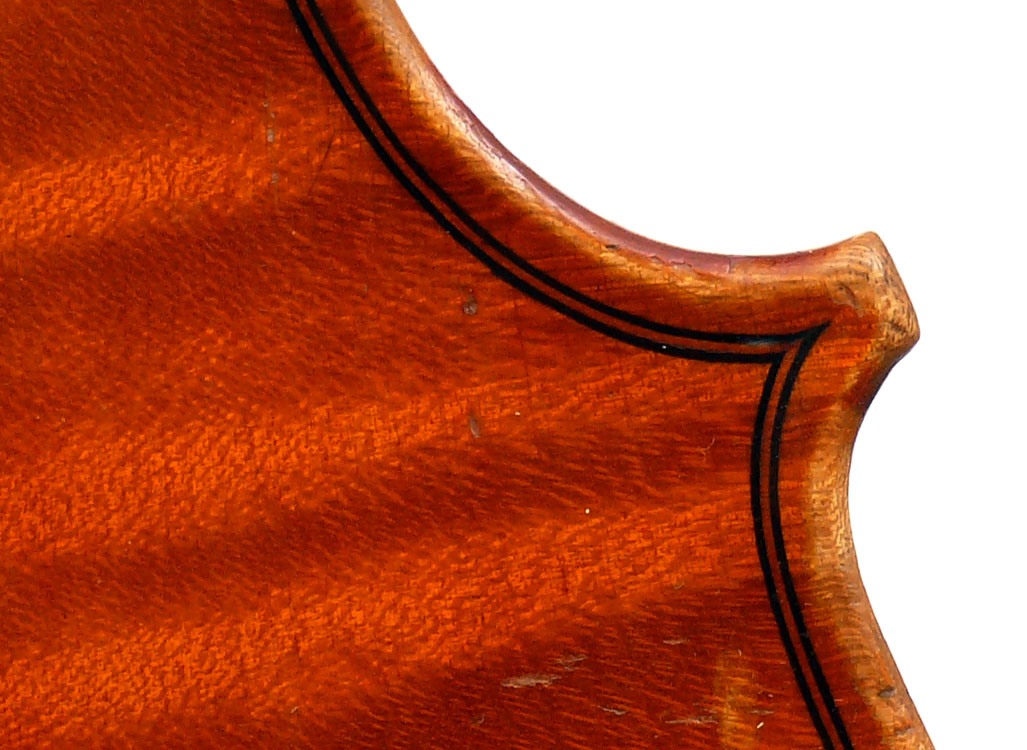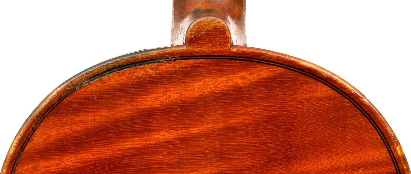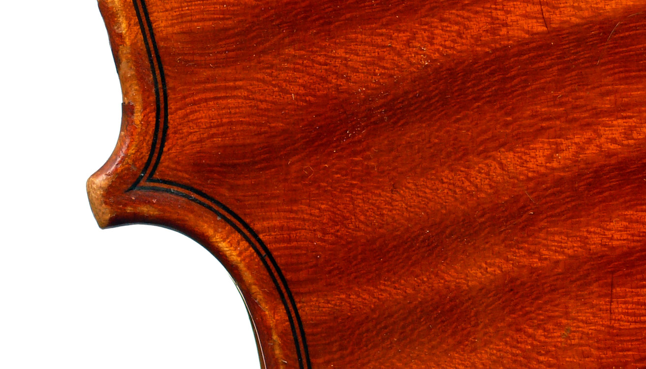 This is a good instrument in all respects. It dates from around 1930 and is in impeccable structural condition. It has a really beautiful one-piece back with distinct flame of broad curl. It follows the Guraneri model quite directly and manifests a steady hand in all aspects of fine lutherie, notably very tidy work in the purfling and corners.